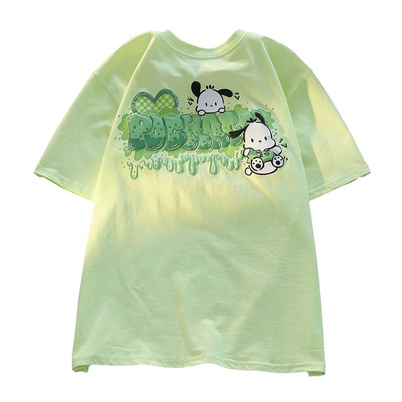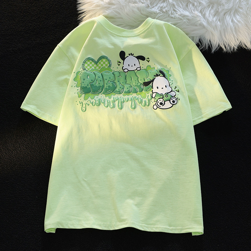 日系复古字母发泡短袖T恤男女款夏季学院风宽松休闲情侣装体恤衫