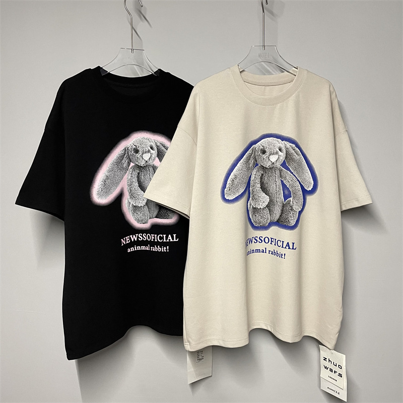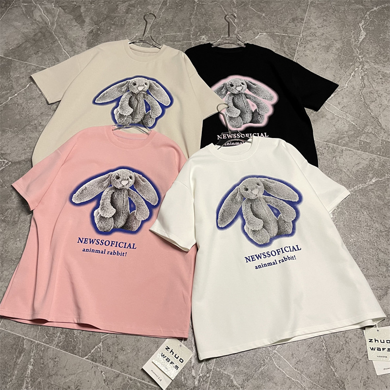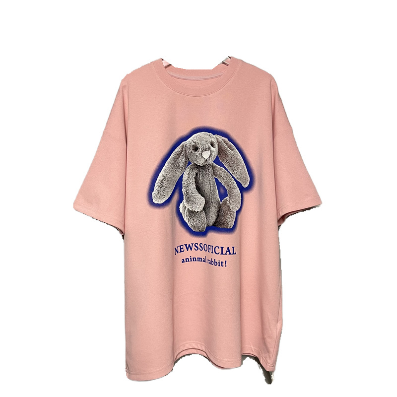卡通可爱兔子oversize短袖t恤女纯棉宽松夏季chic落肩半袖上衣潮