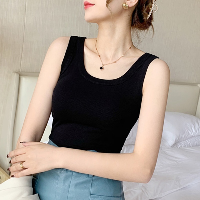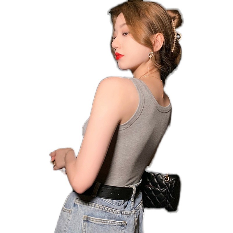 小吊带背心女士夏季外穿内搭打底衫白色法式别致工字螺纹欧美上衣