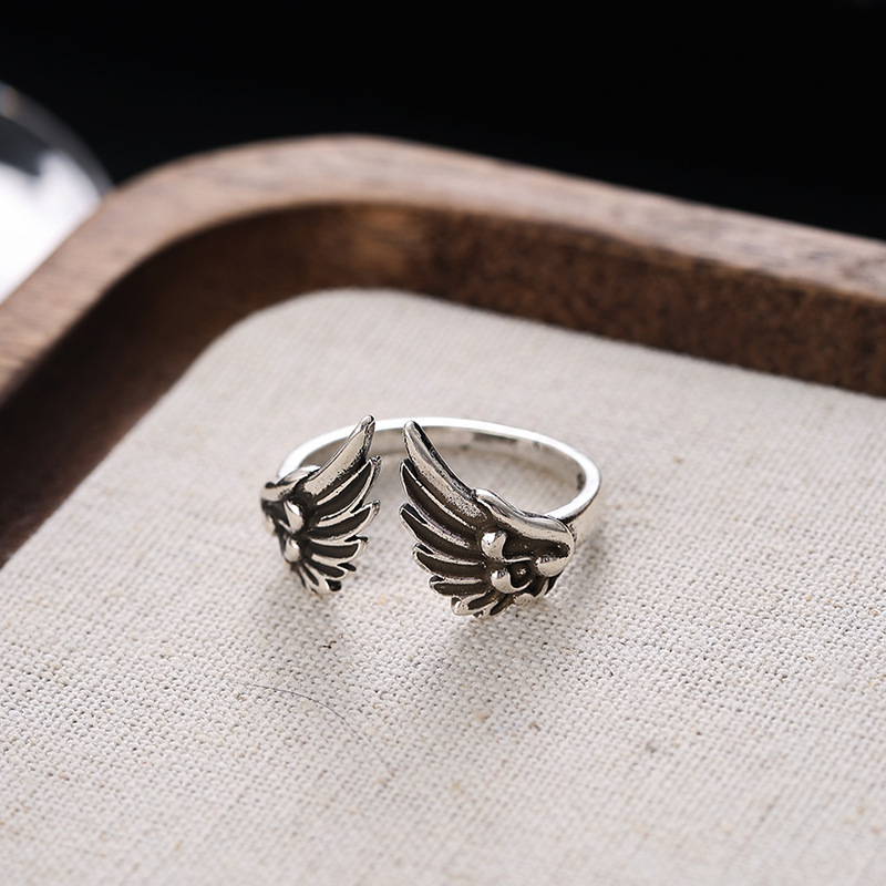 新款复古天使之翼开口戒指女时尚重工精致小众百搭食指戒