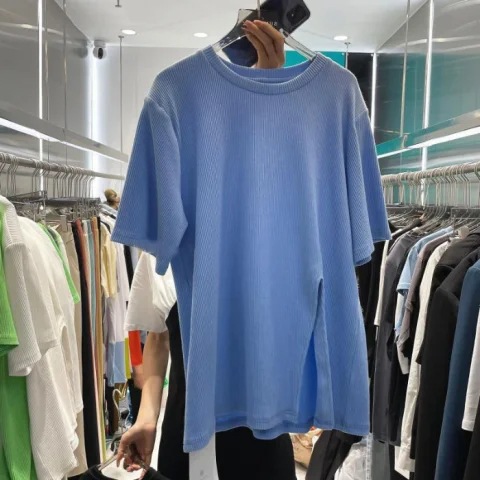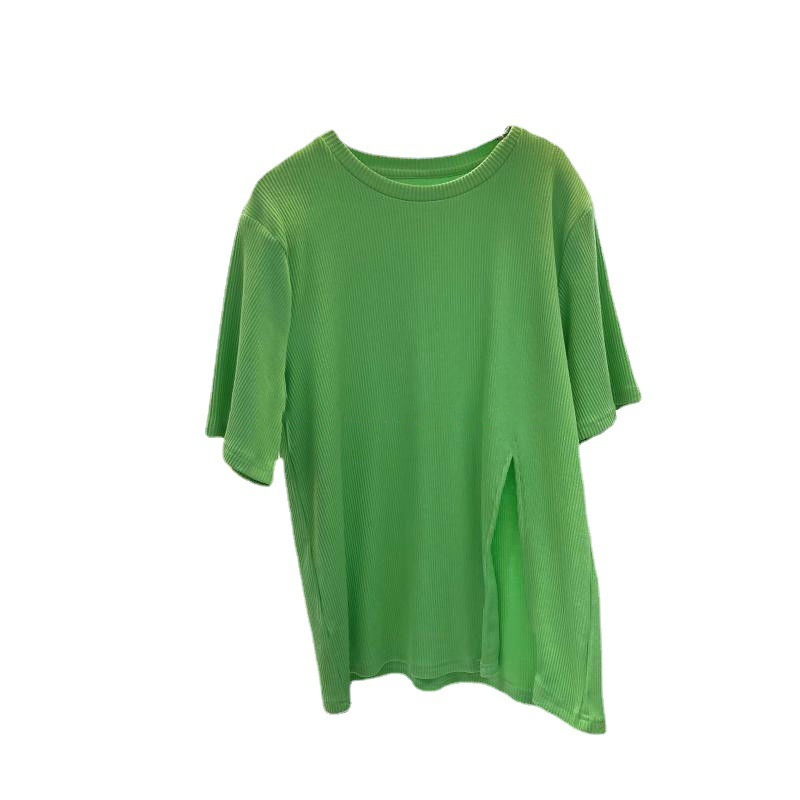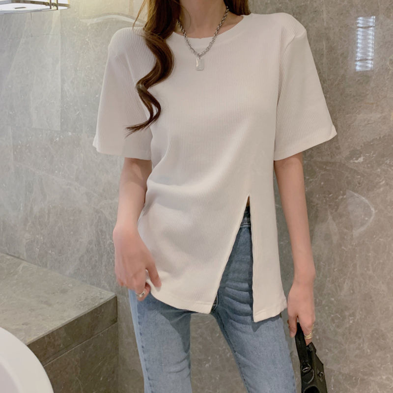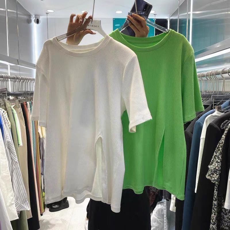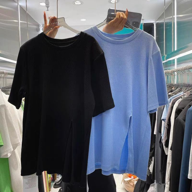 T恤女年新款设计感小众宽松不规则开叉圆领显瘦短袖上衣内搭