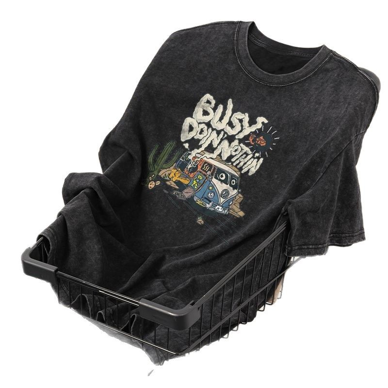 hiphop高街做旧水洗短袖T恤男女港风小众百搭宽松高级感夏季上衣