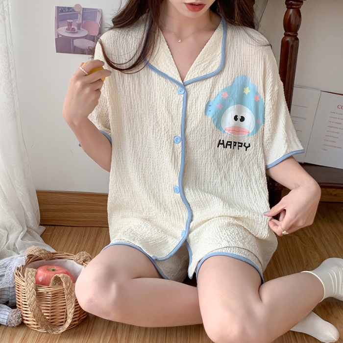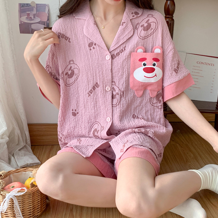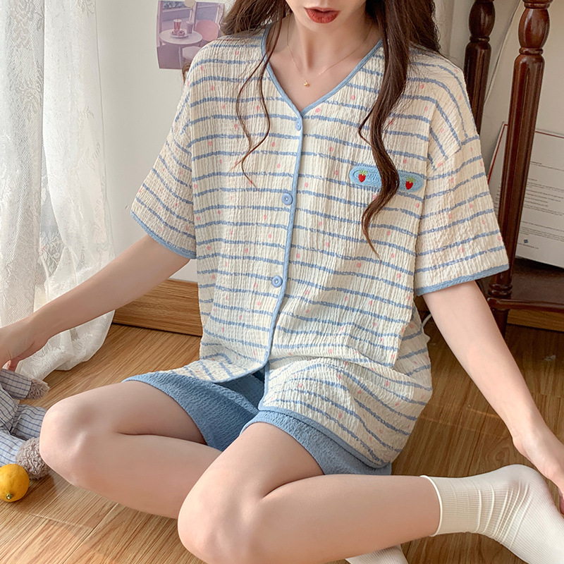 薄款睡衣女夏季条纹短袖纯棉梭织夏天新款家居服套装可外穿