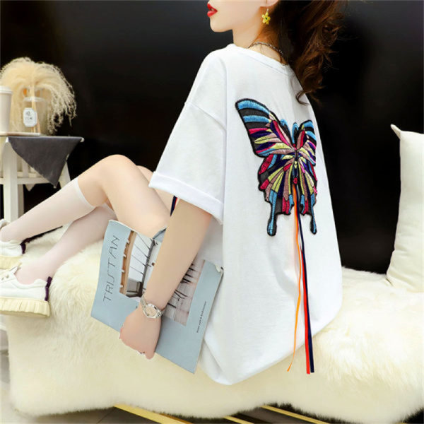 大码女装重工刺绣蝴蝶短袖t恤女夏季新款宽松韩版上衣夏装潮