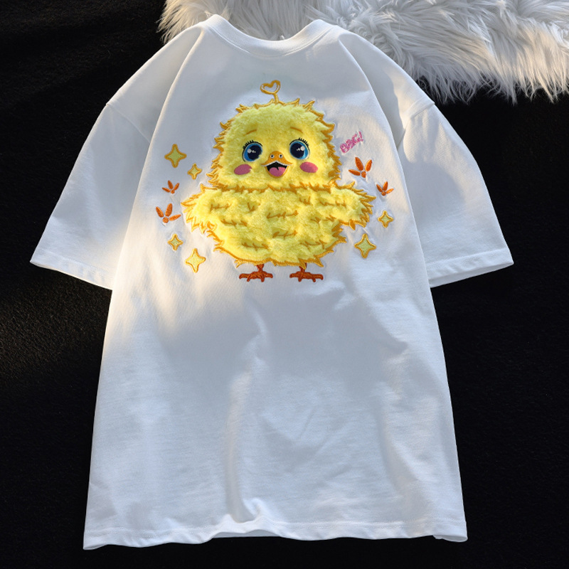 日系植绒呆毛小鸡宽松短袖T恤女夏季ins艺术感设计学院风情侣上衣