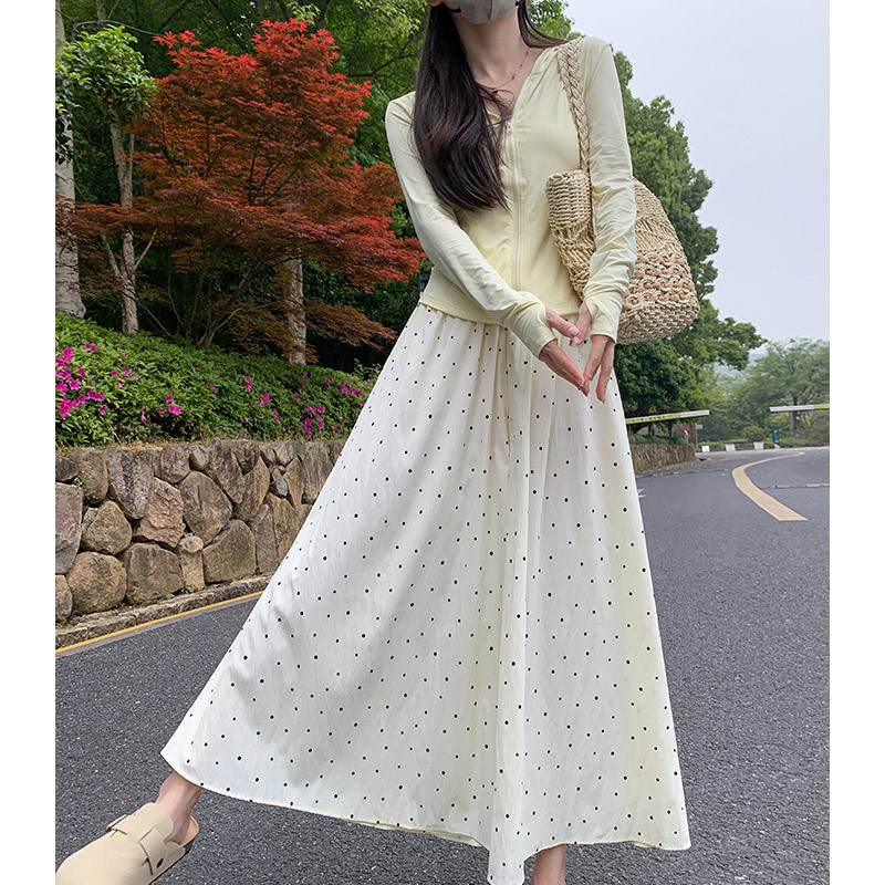 白色波点半身裙女夏季新款高腰a字显瘦休闲阔腿裤小个子裙裤