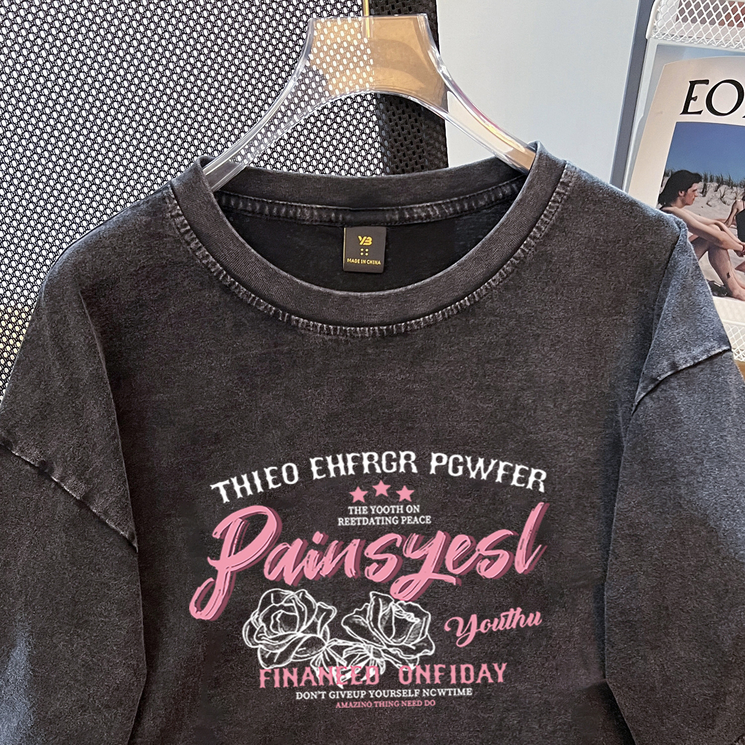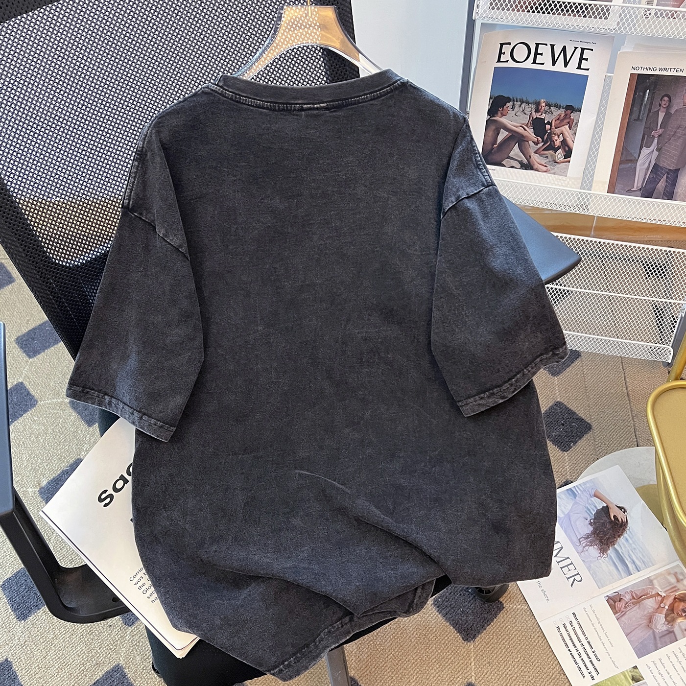 美式复古水洗纯棉短袖T恤女夏季高街潮牌做旧宽松百搭重磅体恤衫
