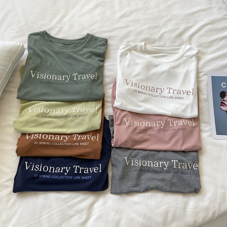 超手感莫代尔夏季新款垂软弹滑凉快字母印花圆领短袖T恤上衣女装