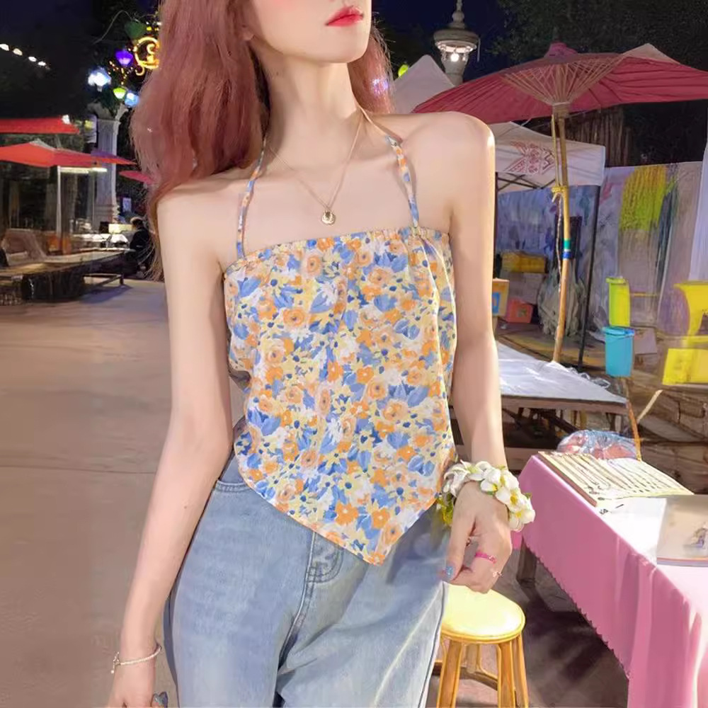 夏季盐系少女穿搭休闲时尚甜辣妹纯欲风吊带背心短款不规则小上衣