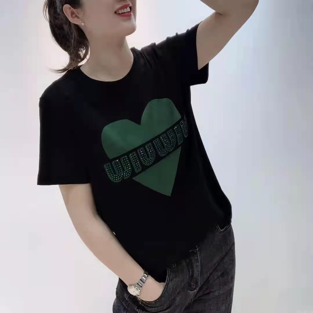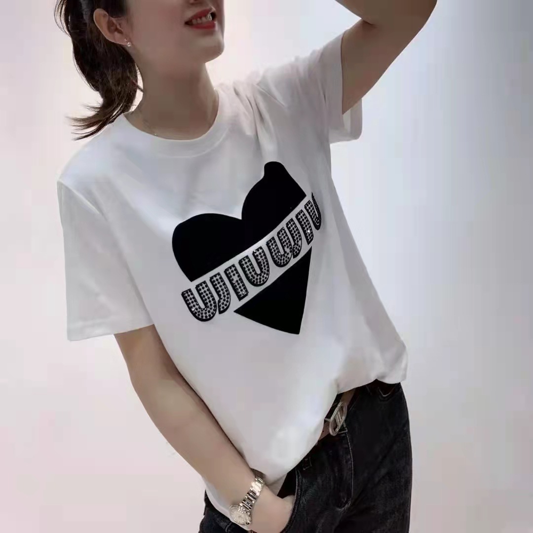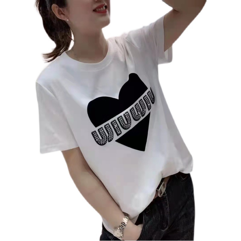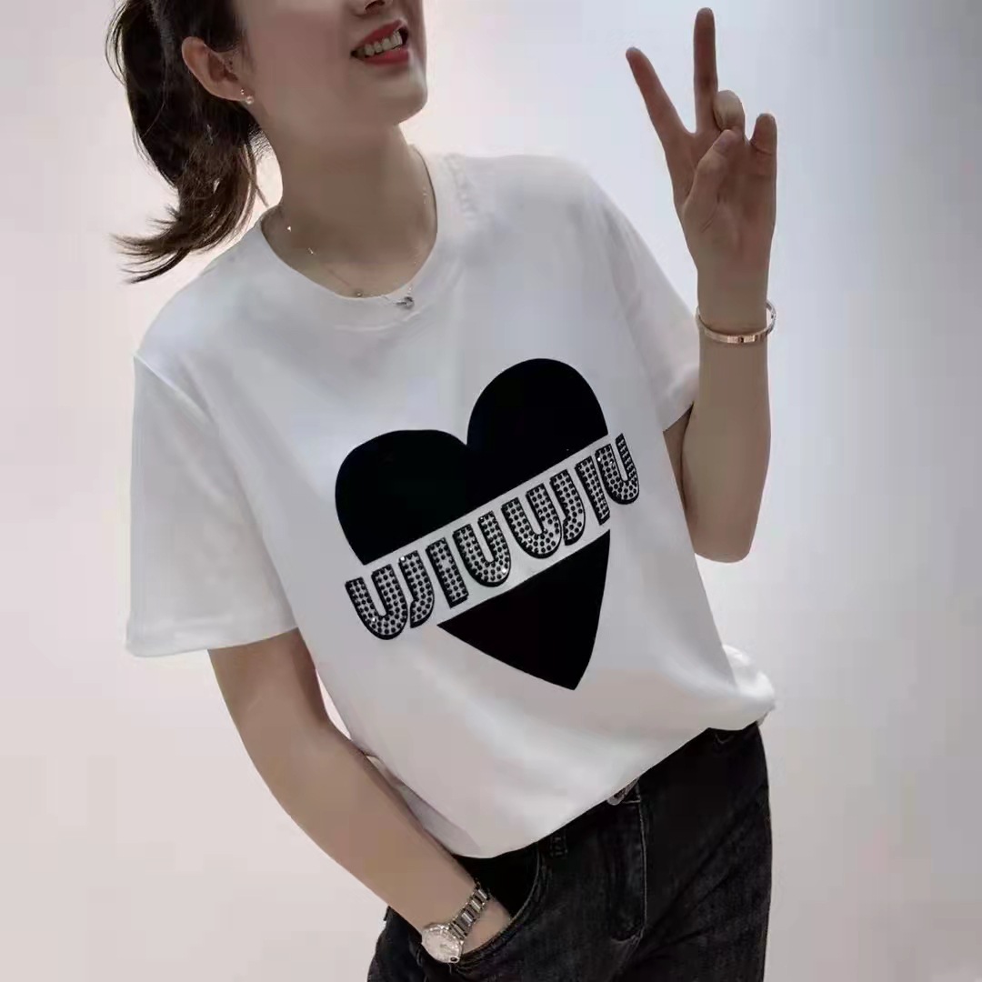 欧货高品质纯棉短袖t恤女2025夏新款宽松显瘦设计感爱心烫钻上衣
