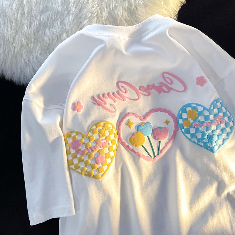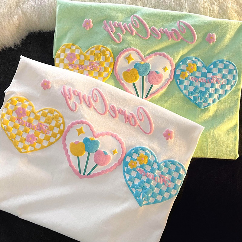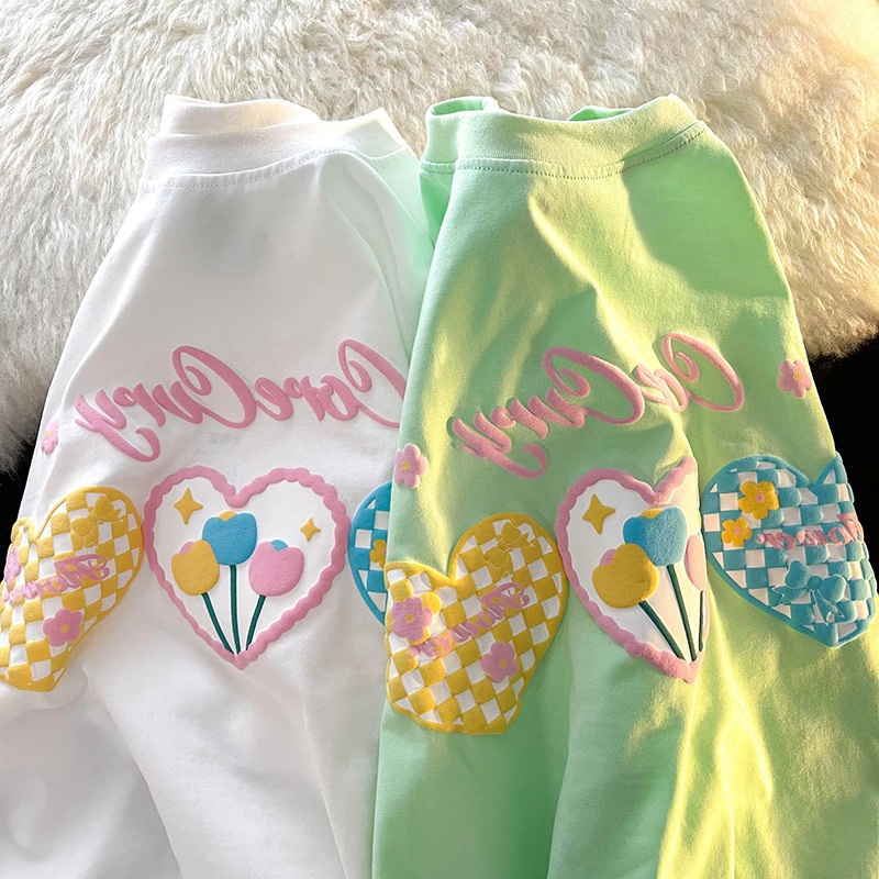薄荷绿日系软糯爱心短袖t恤女夏季宽松小众潮流港味半袖上衣学生