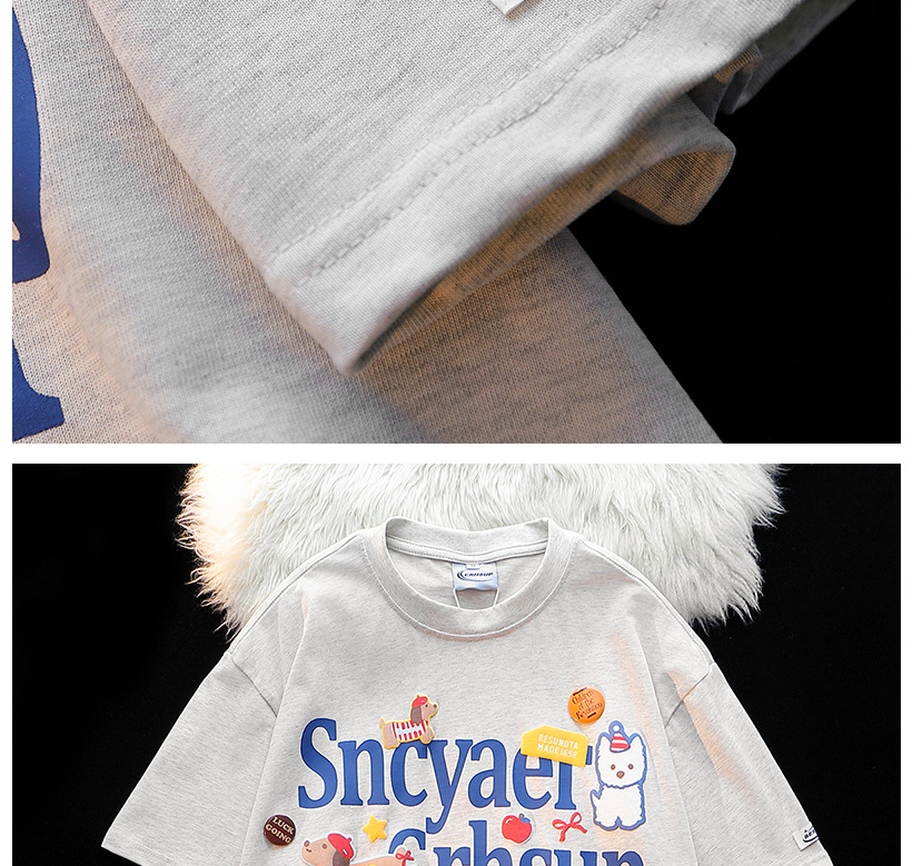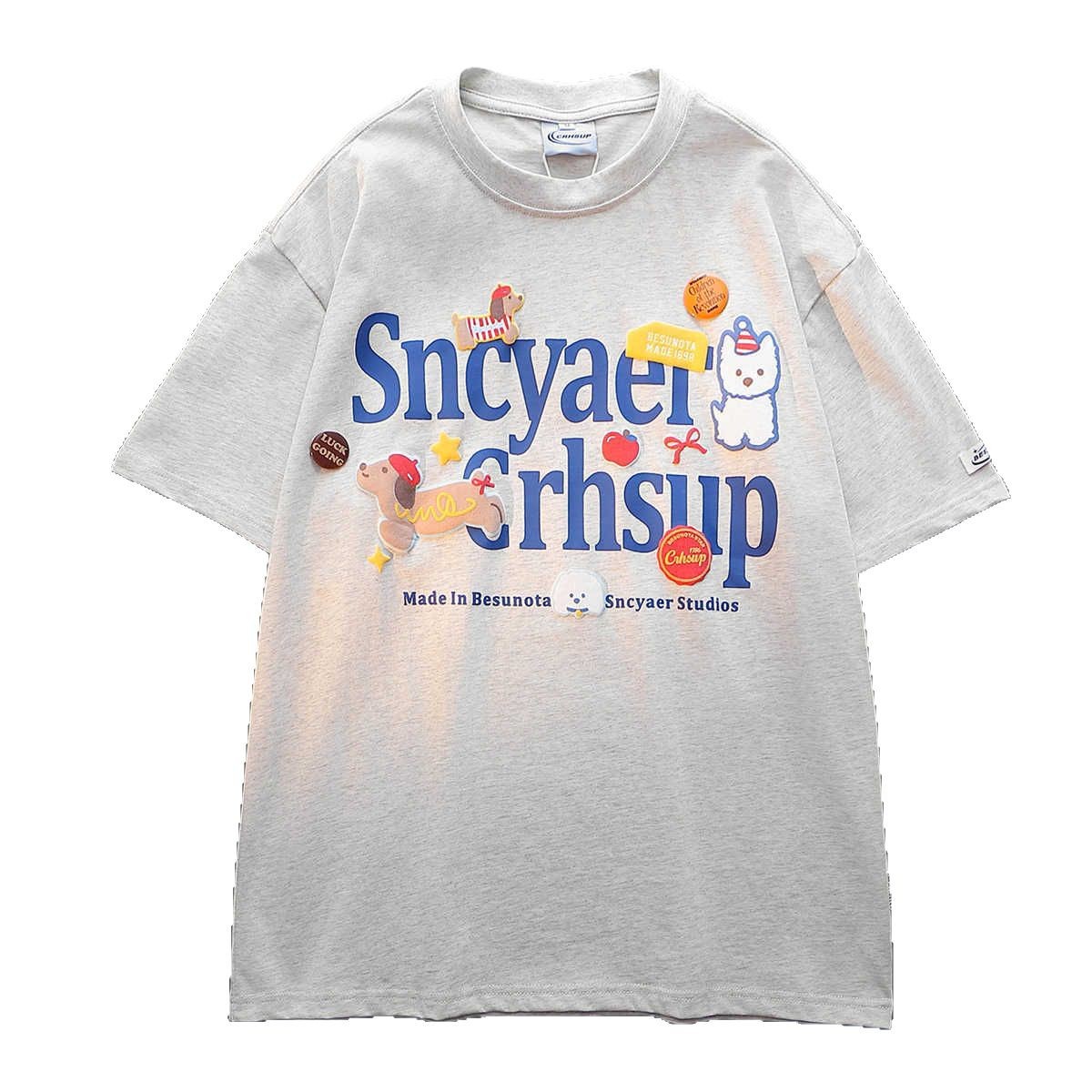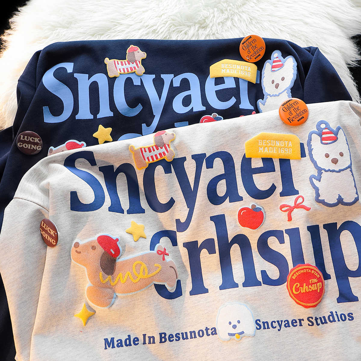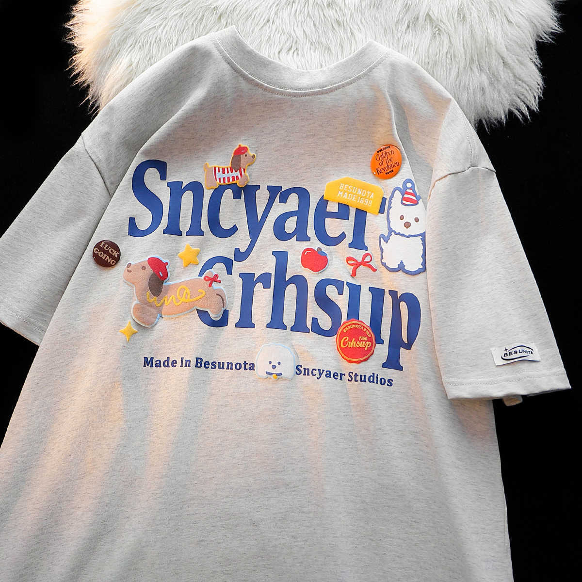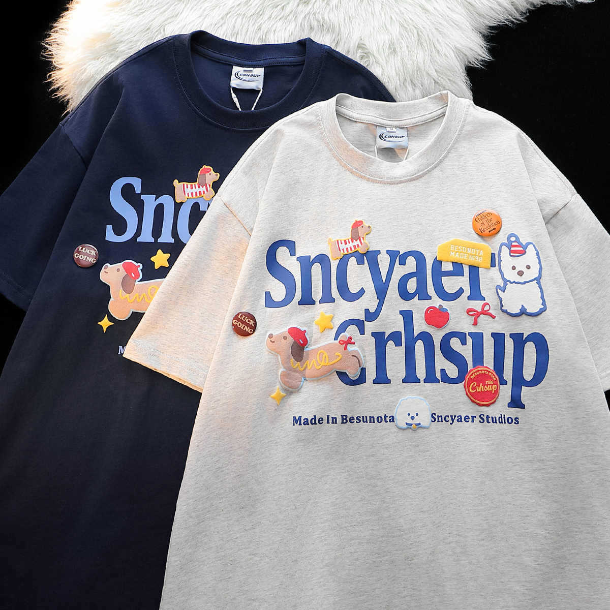 美式复古印花立体小狗短袖t恤女夏季可爱宽松慵懒风chic情侣上衣
