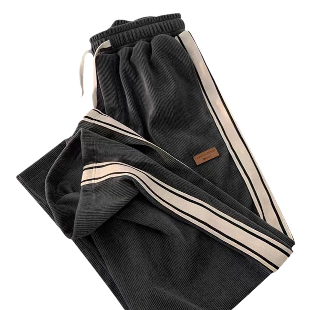 灯芯绒裤子女春秋青少年宽松直筒阔腿裤潮流女生运动休闲长裤高街