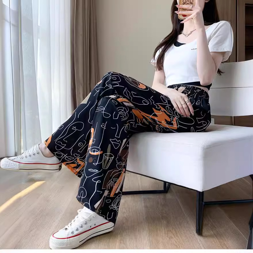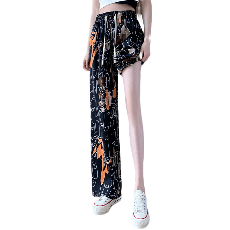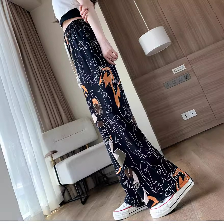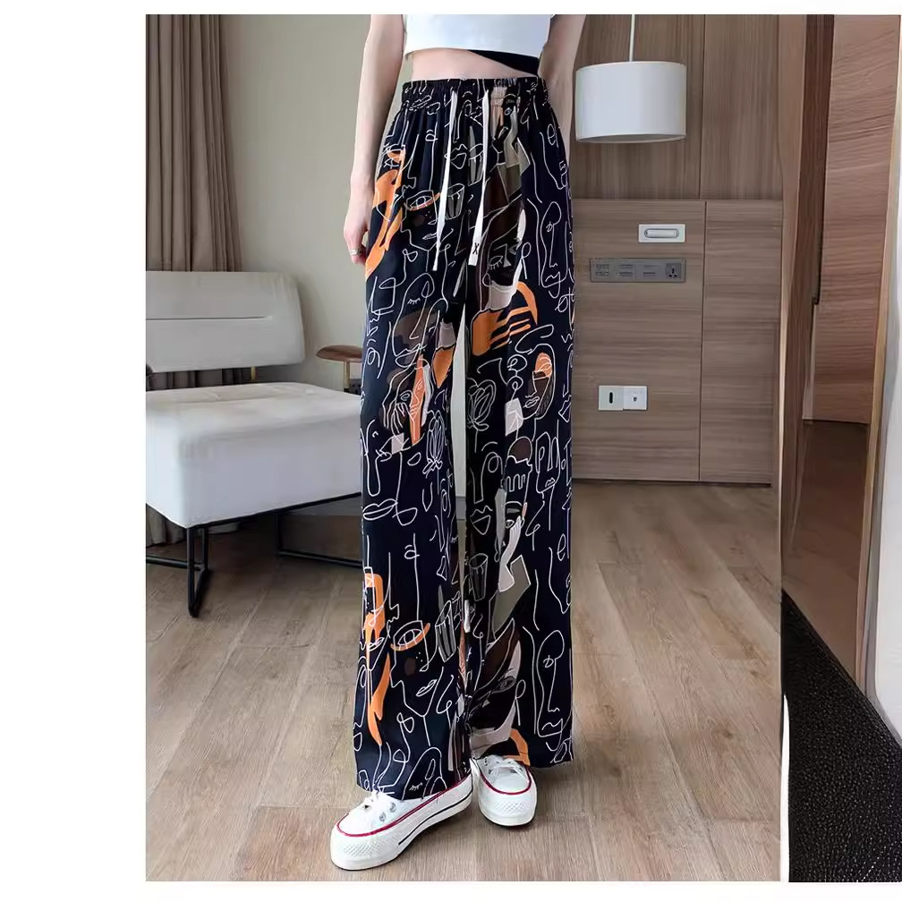 冰丝雪纺花裤子女夏季薄款2025年新款爆款垂感抖抖凉凉空调阔腿裤