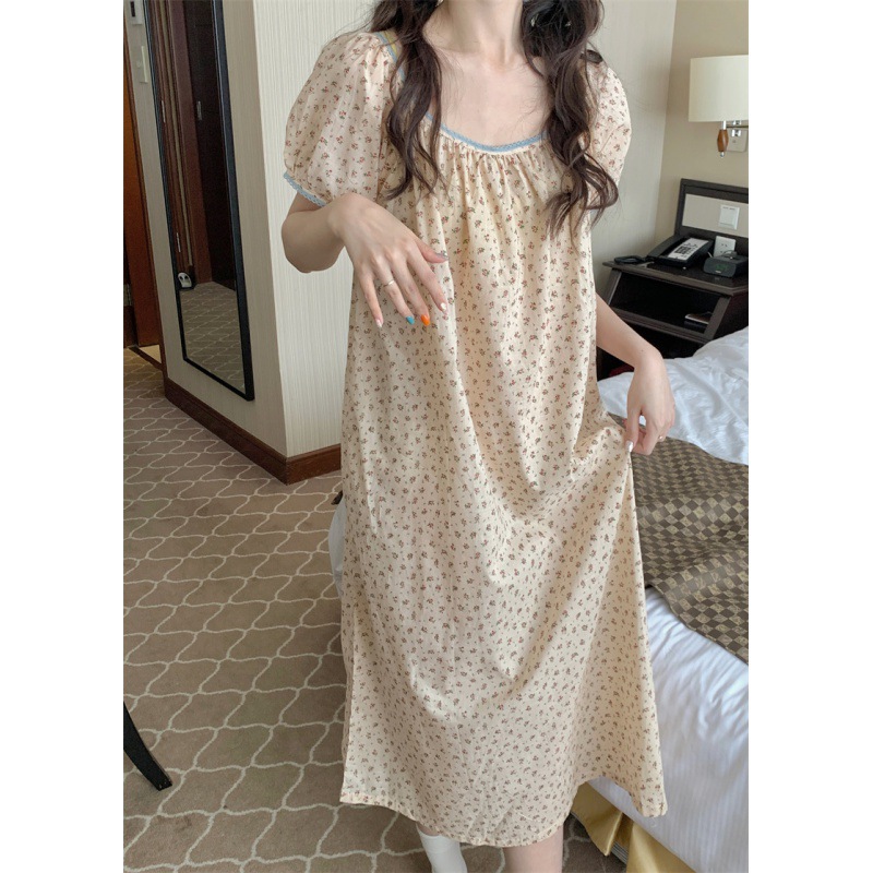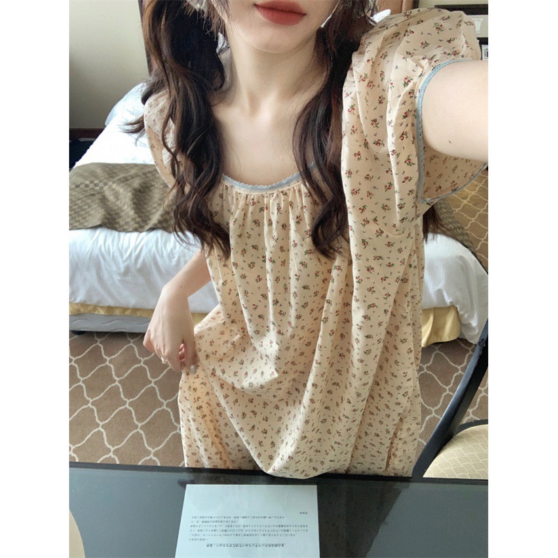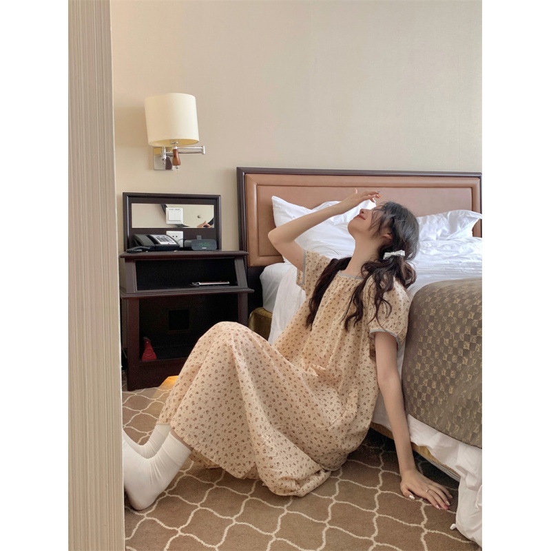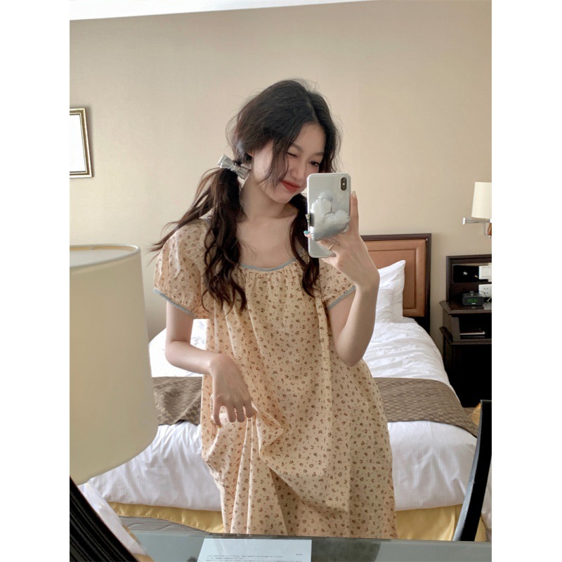 夏季新款 日系圆领小碎花短袖家居连衣裙睡裙