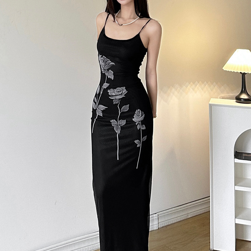 欧美风春季新款女装网纱吊带裙显瘦修身包臀收腰连衣裙