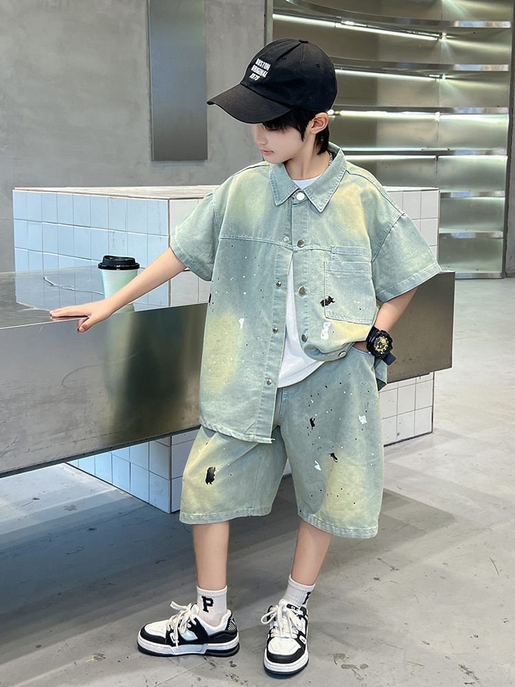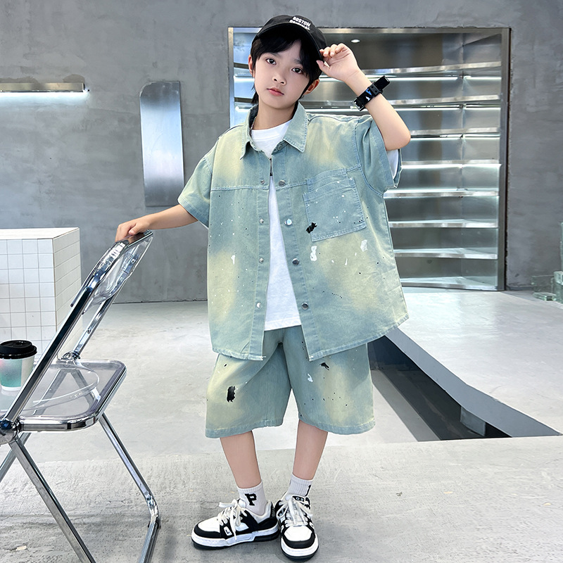 儿童装男童夏装牛仔短袖短裤套装2025新款中大童男孩夏季两件套潮