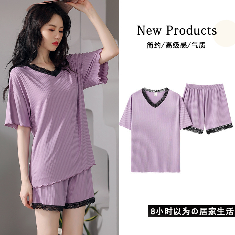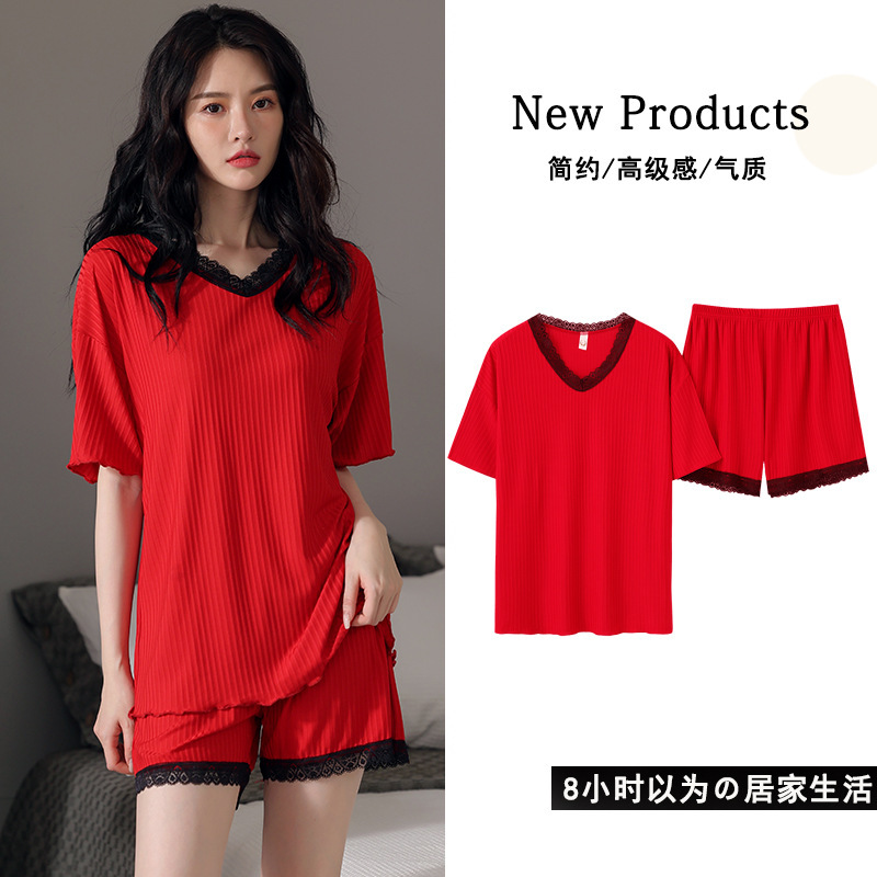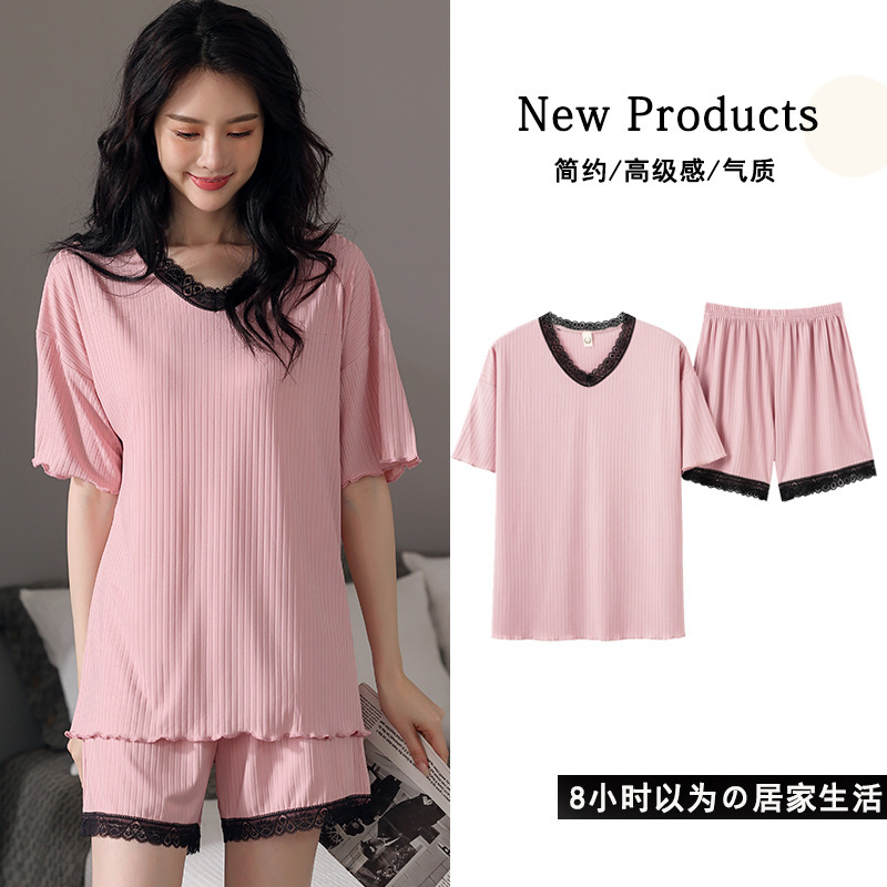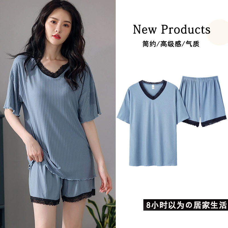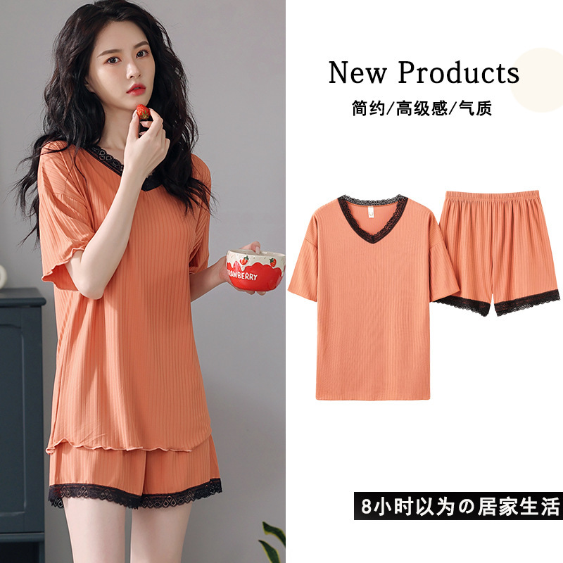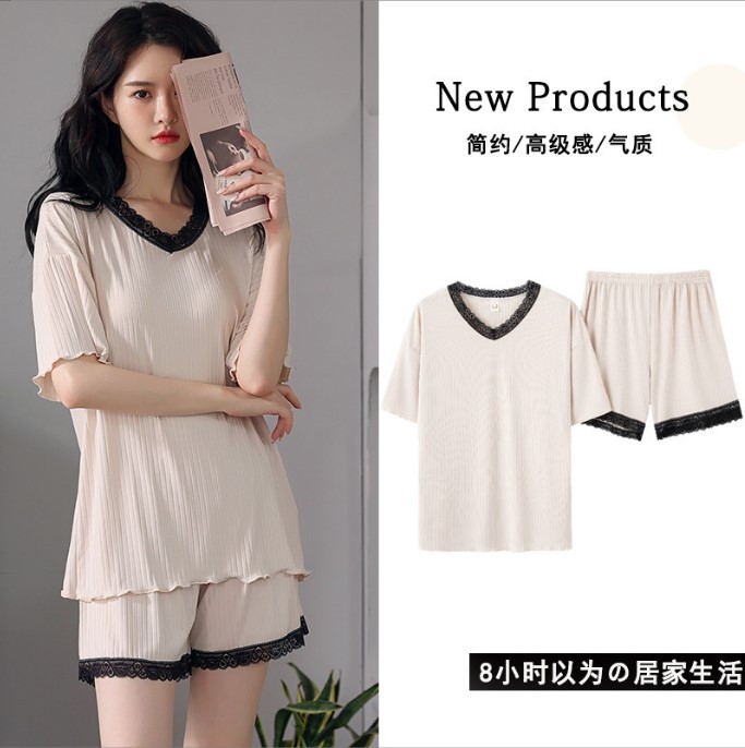 日系新款纯色牛奶丝凉感睡衣女夏季短袖短裤两件套高级感家居服