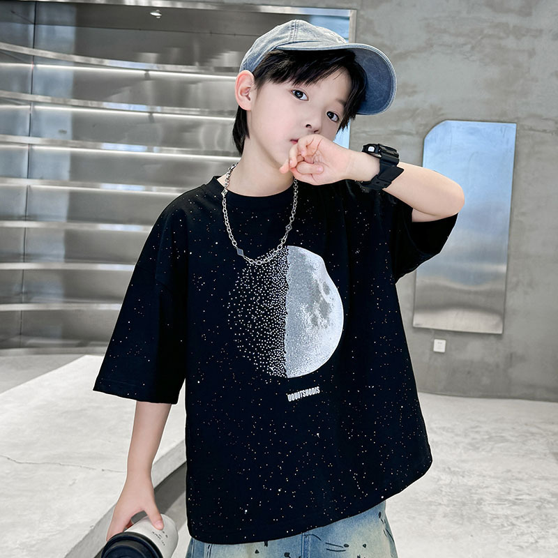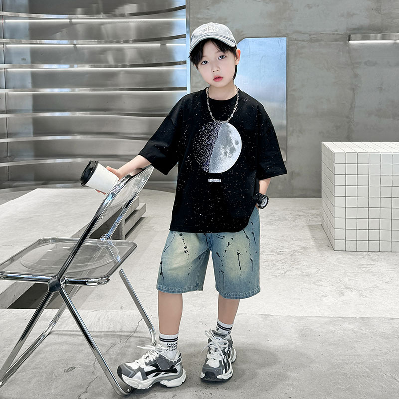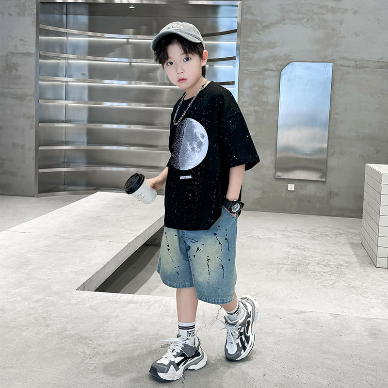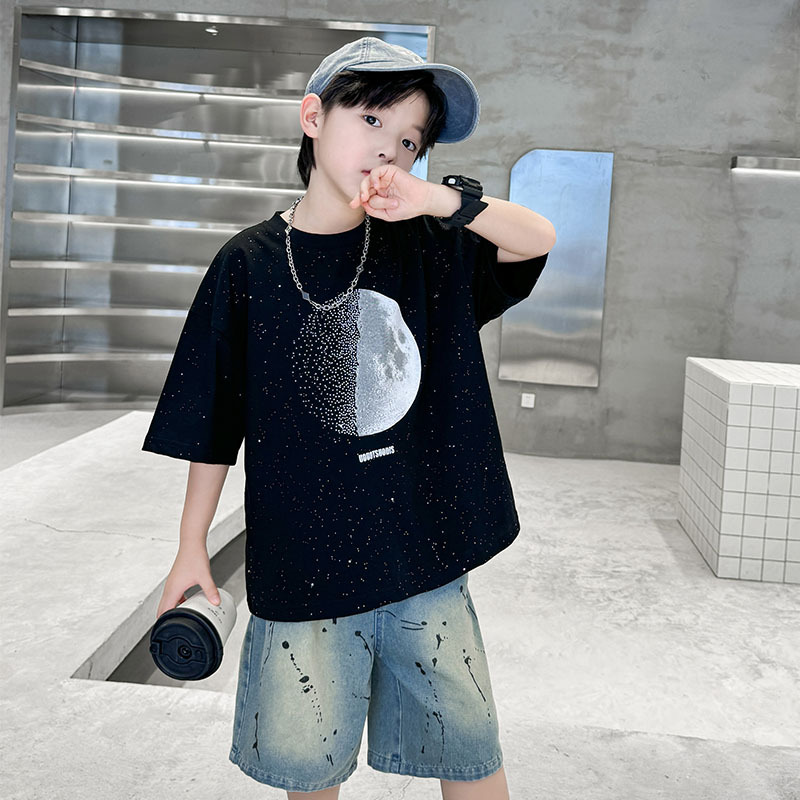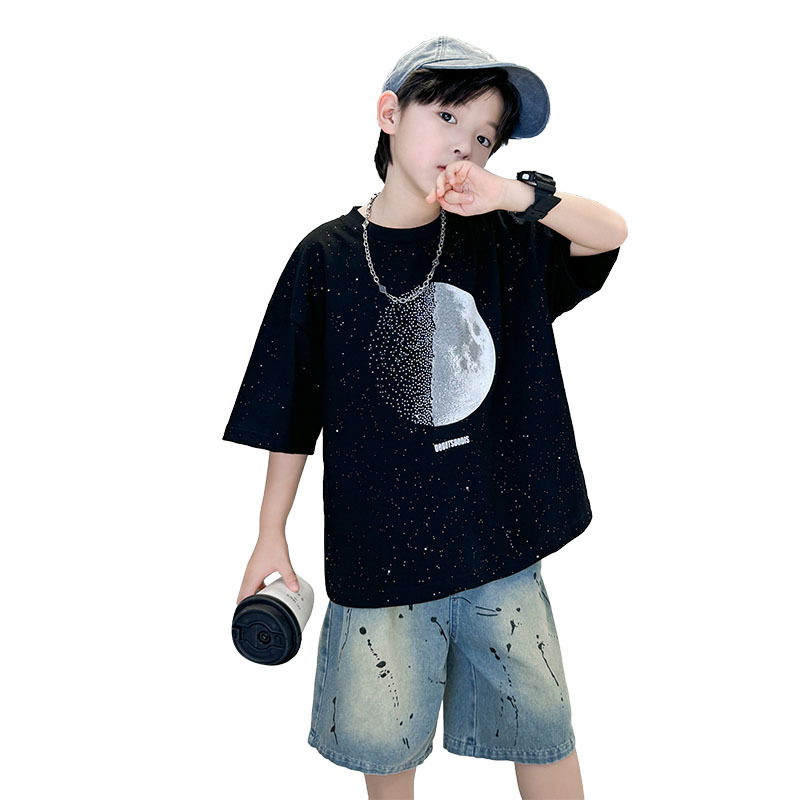 儿童装男童夏装套装中大童夏季短袖t恤短裤两件套帅气炸街夜光T恤