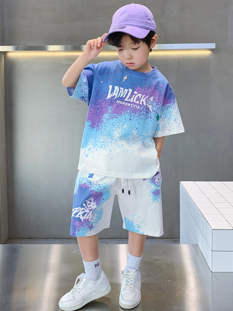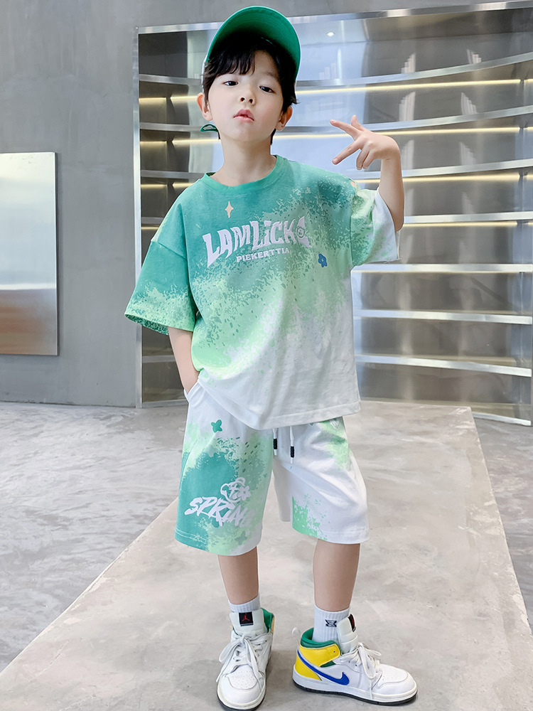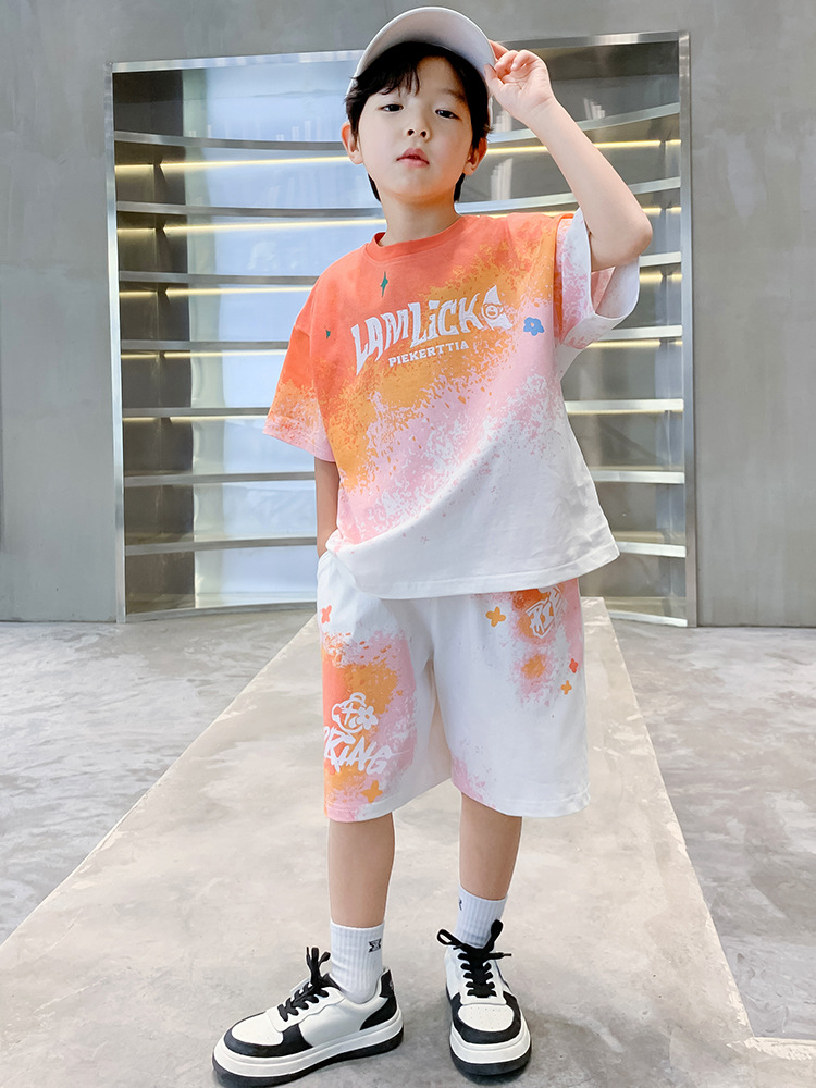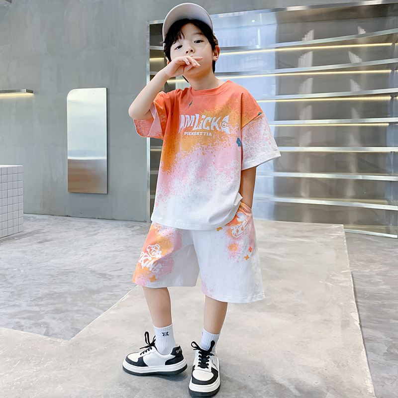 儿童装男童夏装渐变短袖套装薄款2025新款男孩夏季半袖运动两件套