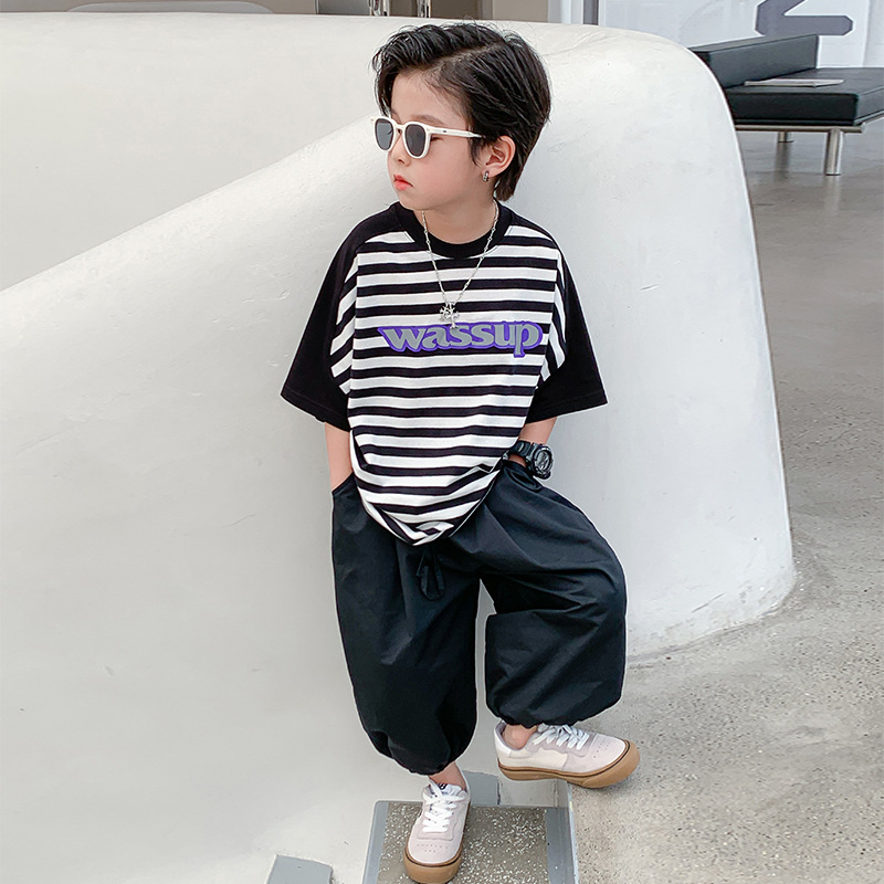 童装男童短袖t恤夏季薄2025新款大童夏款衣服儿童夏装条纹半袖T恤