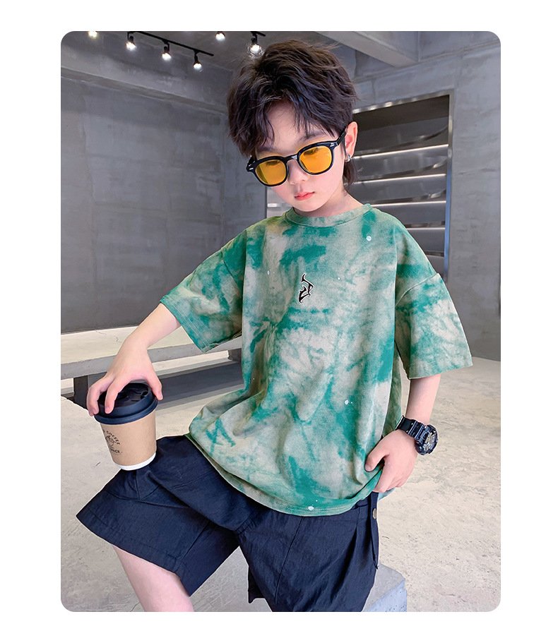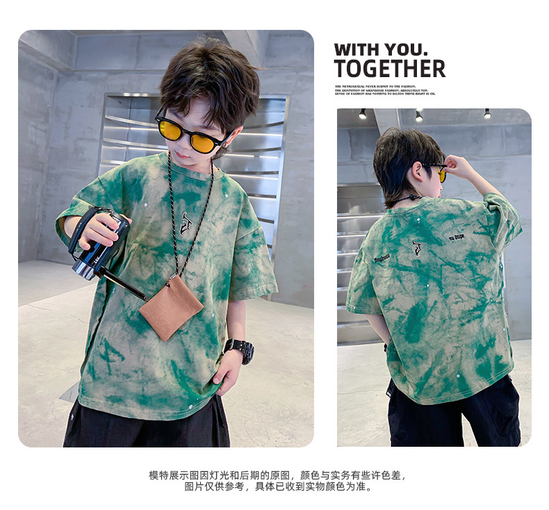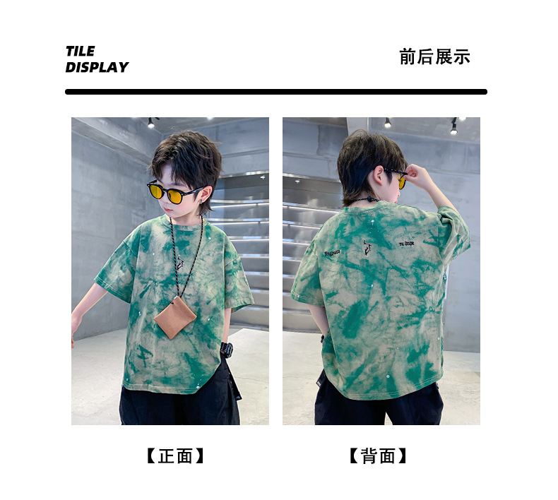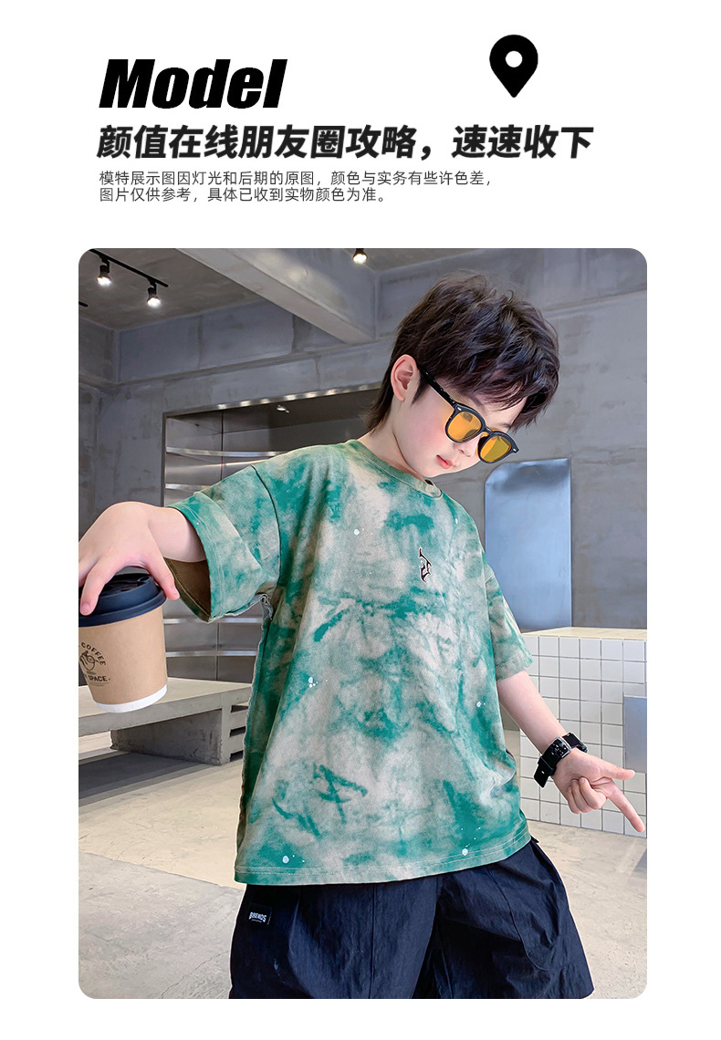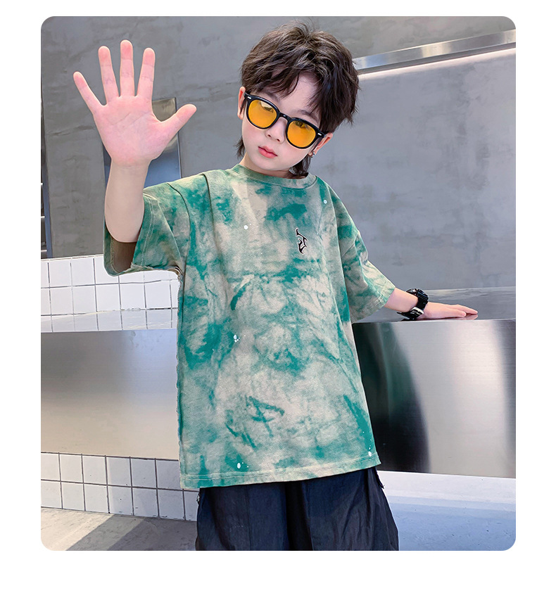 男童夏装潮牌扎染短袖T恤2025新款儿童男孩夏季酷帅宽松半袖上衣