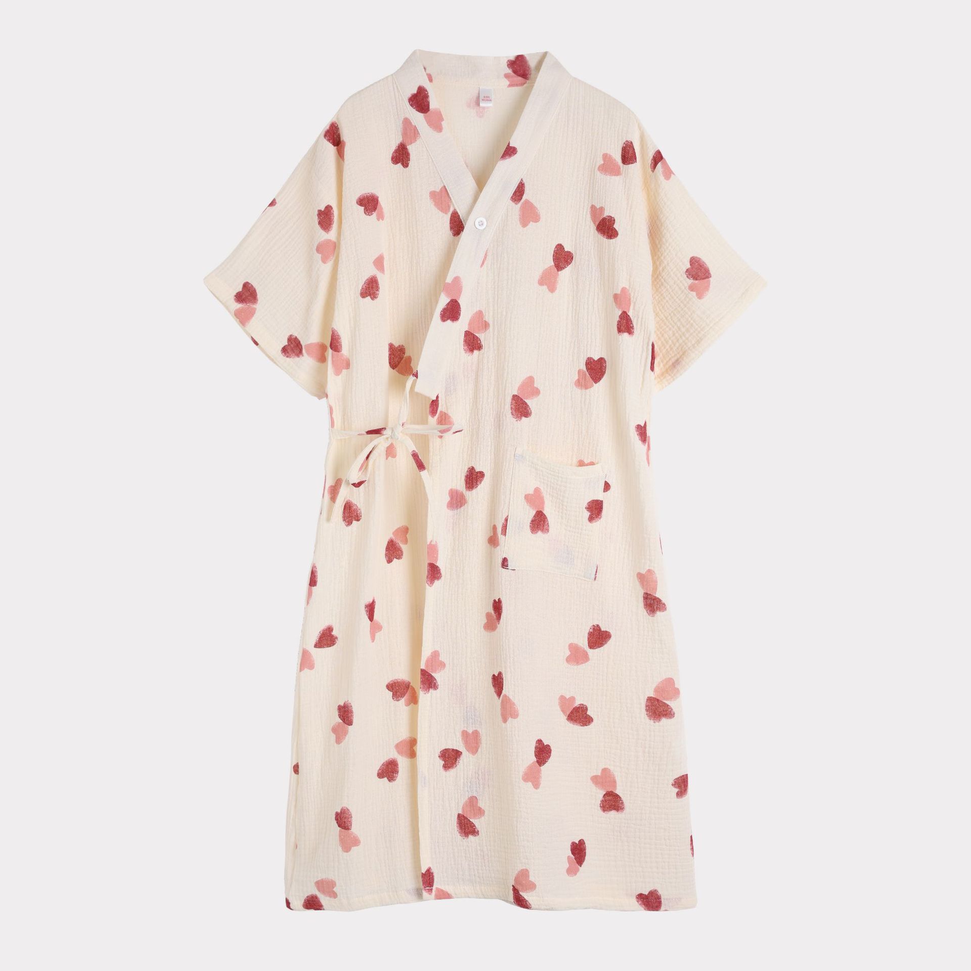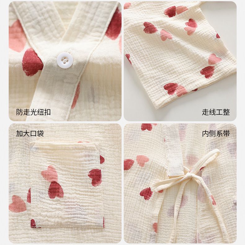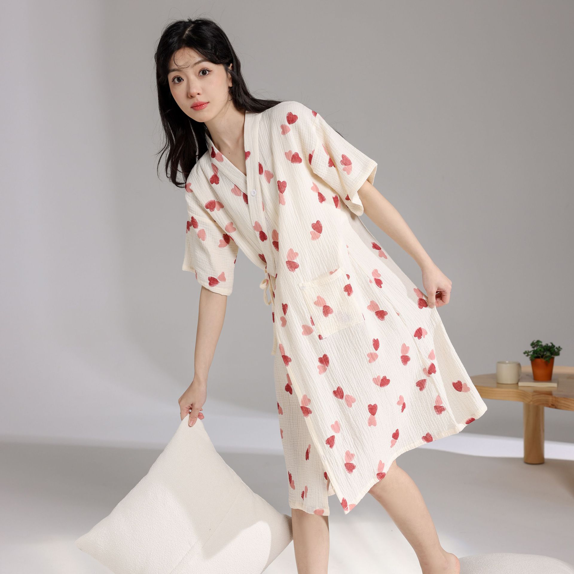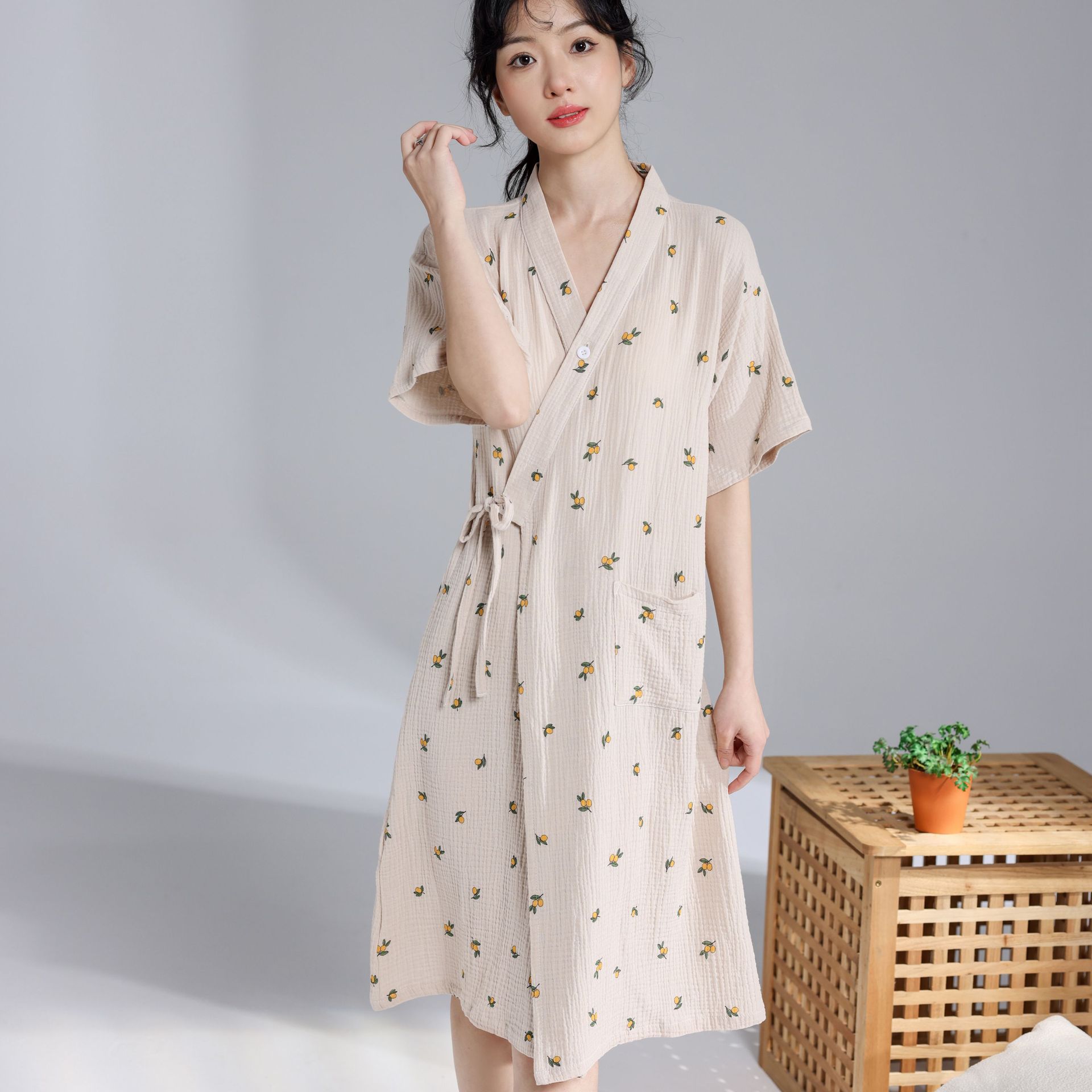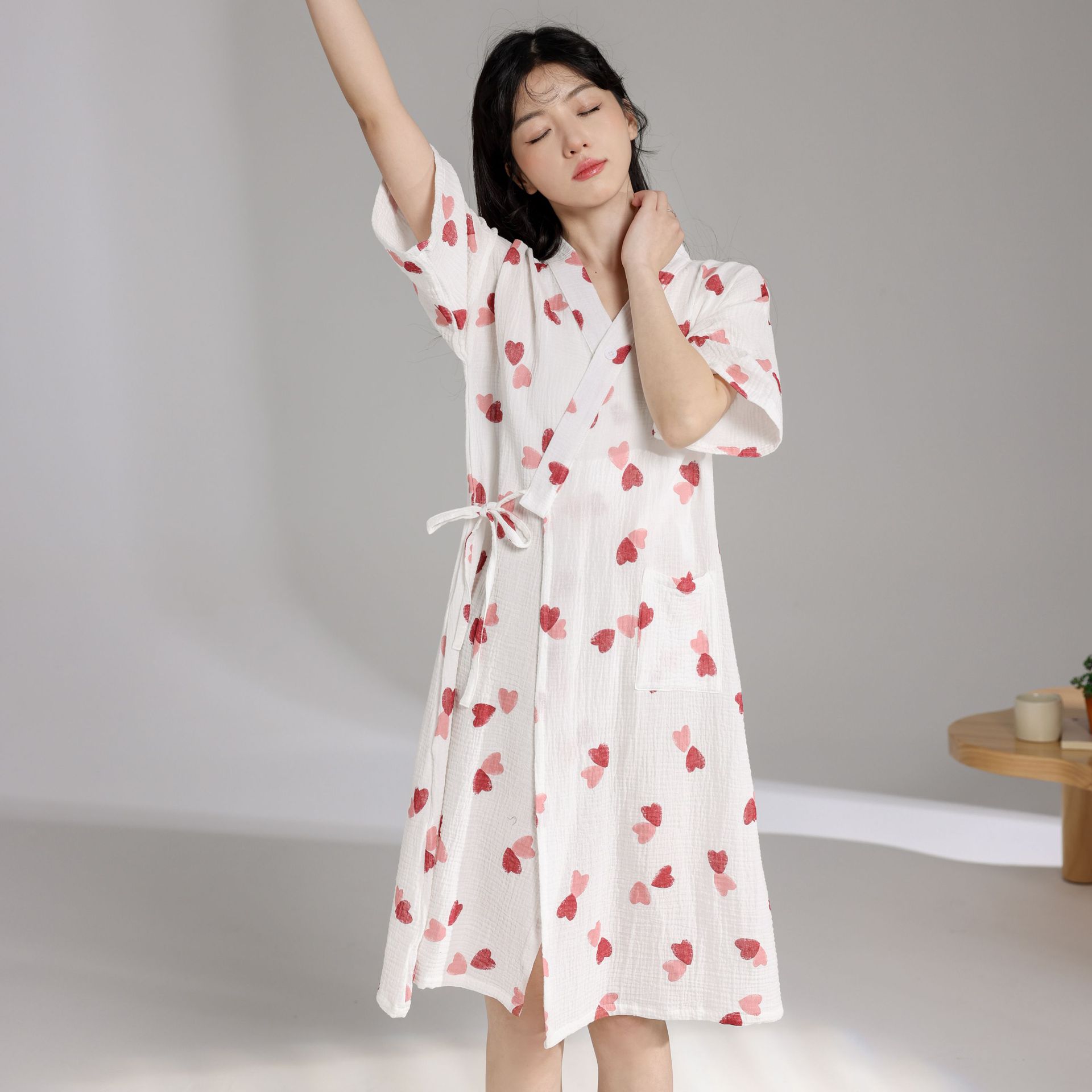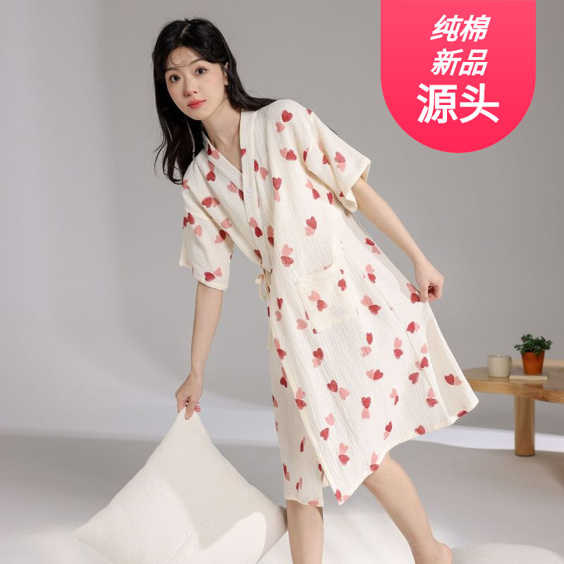 睡裙女夏纯棉纱布和服睡袍棉麻薄款日系甜美夏季家居服睡衣女