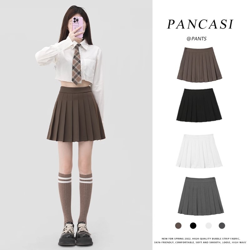 卡其色百褶裙女春夏季小个子学院风jk气质短裙