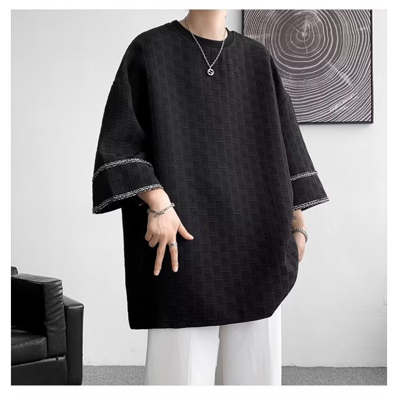 高级感美式七分袖T恤男士设计感小众潮牌ins夏季冰丝痞帅短袖体恤