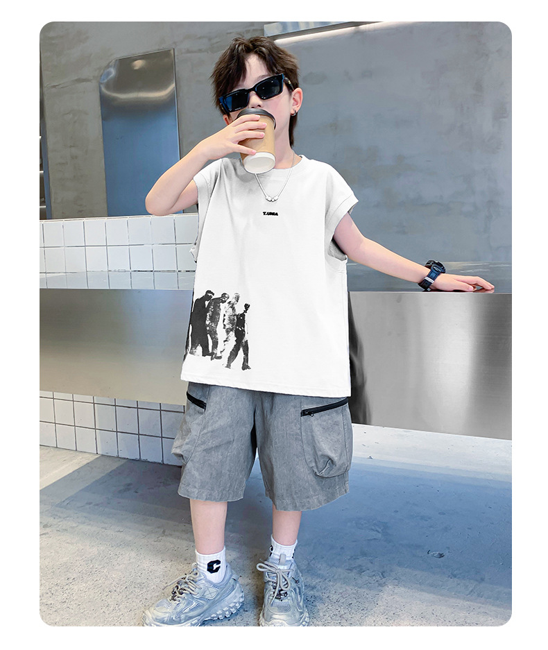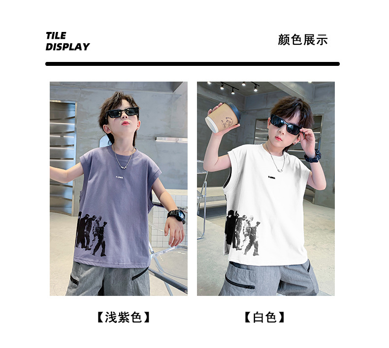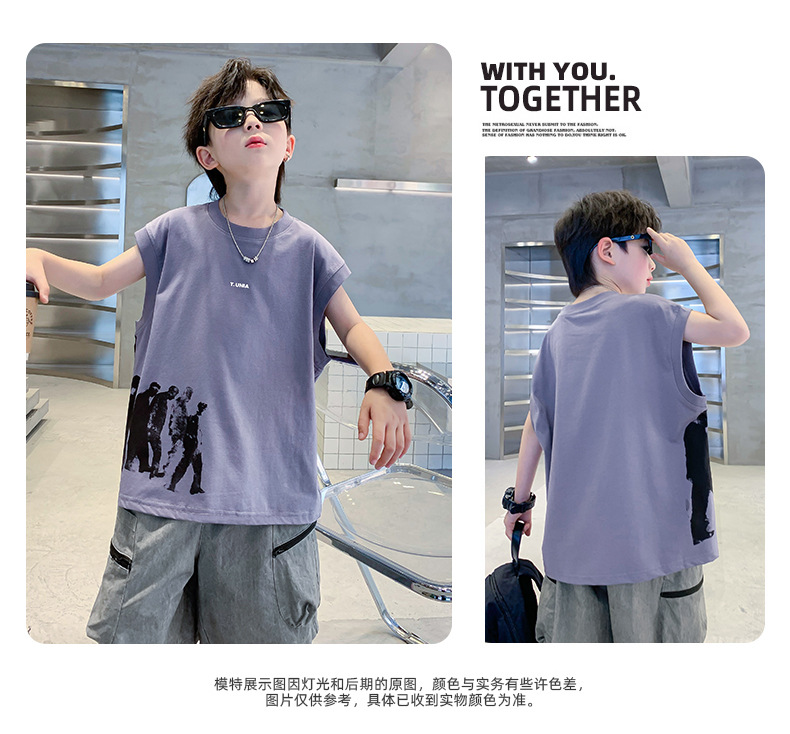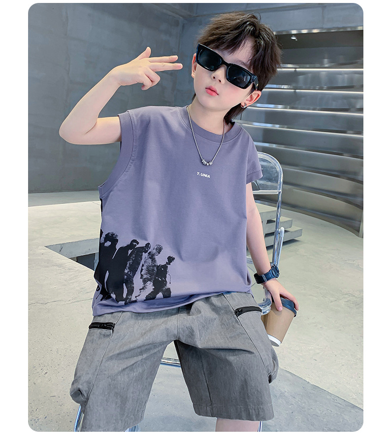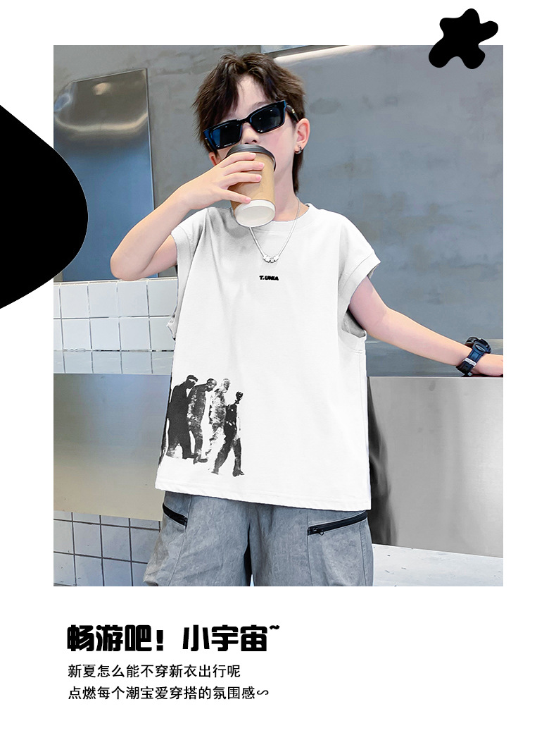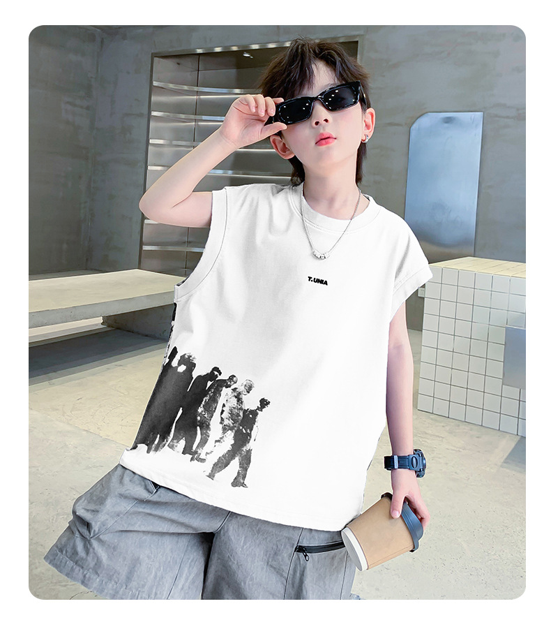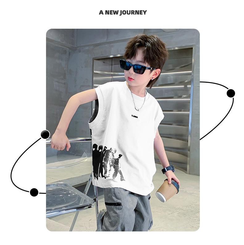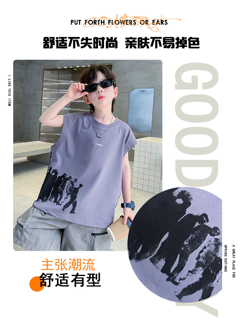 男童t恤夏季纯棉2025新款中大童夏款上衣潮儿童夏季宽松无袖背心T
