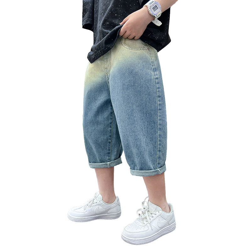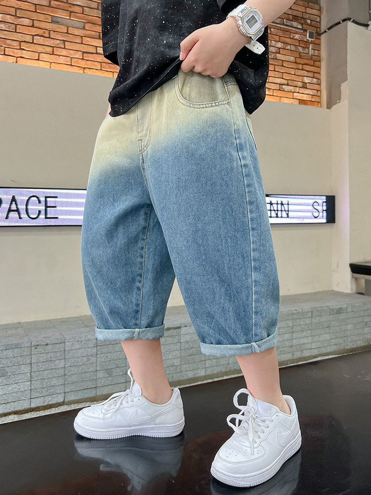 男童潮牌渐变牛仔短裤夏季薄2025新款儿童夏装裤子大男孩夏款中裤