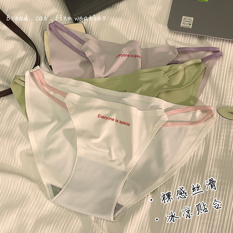 一片式冰丝无痕内裤女性感细带低腰弹力亲肤纯棉裆透气少女三角裤