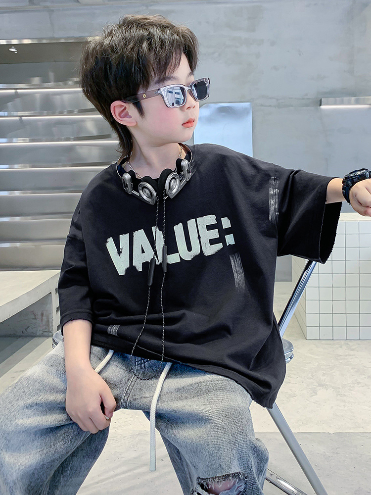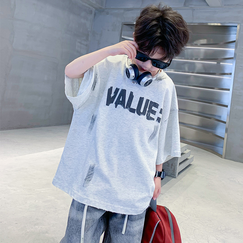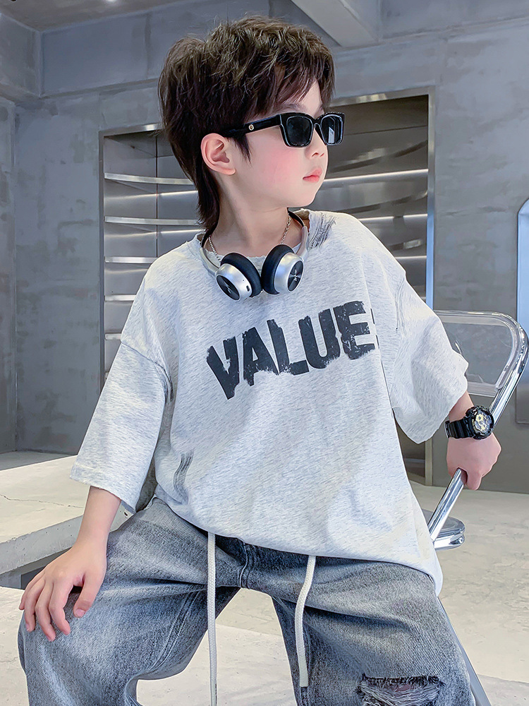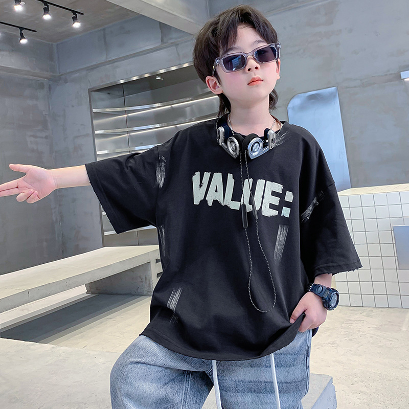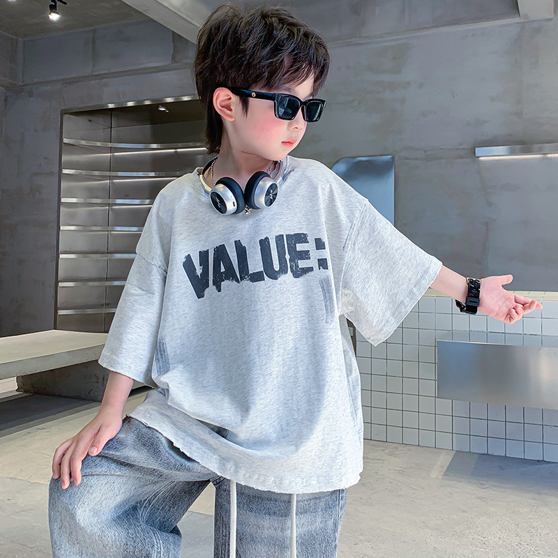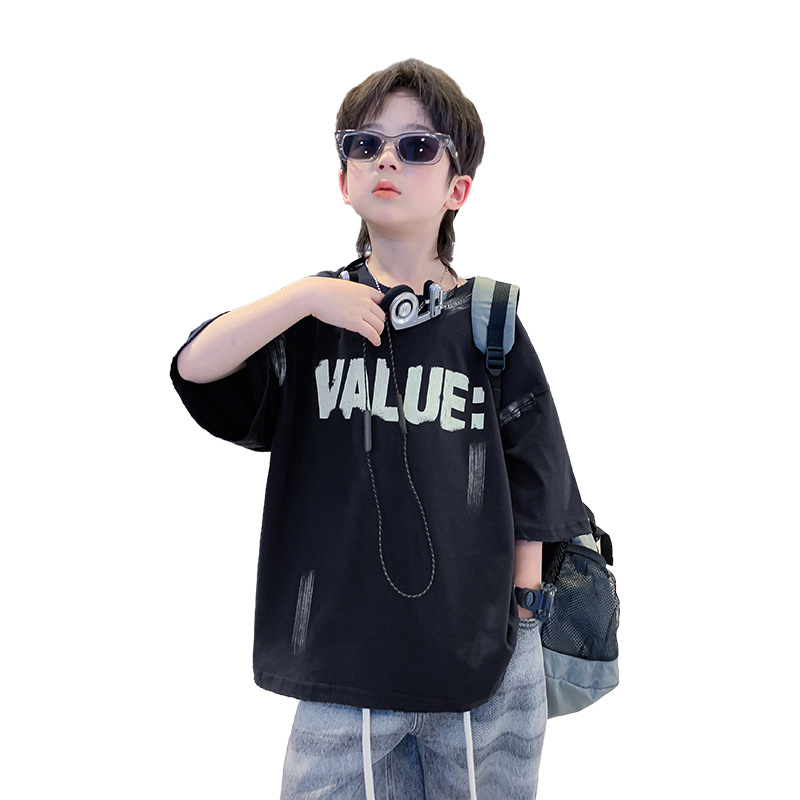 儿童装男童短袖t恤夏季纯棉半袖2025新款大男孩夏装宽松体恤上衣