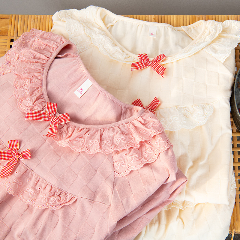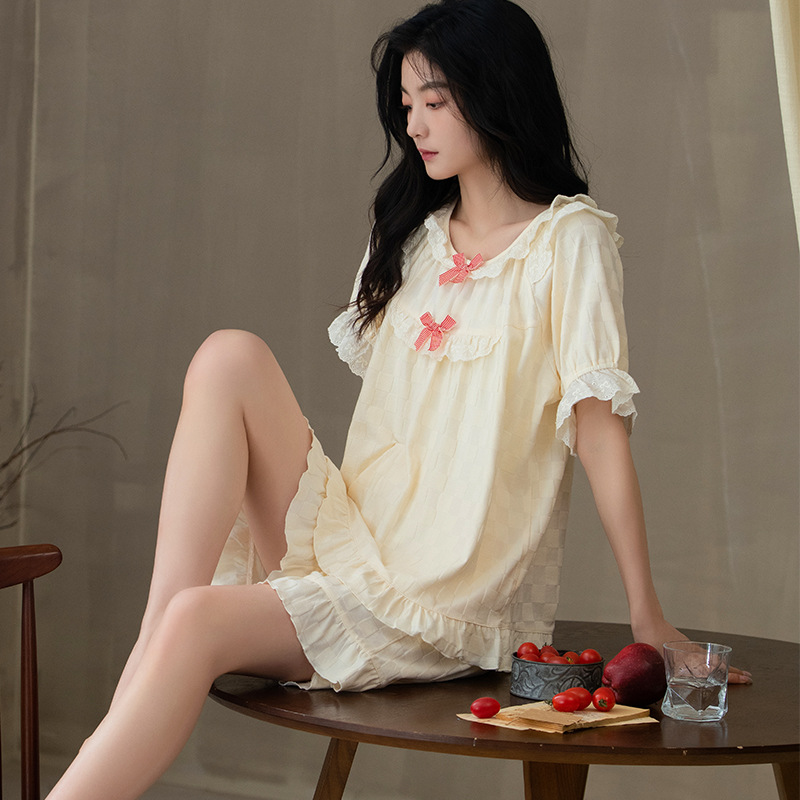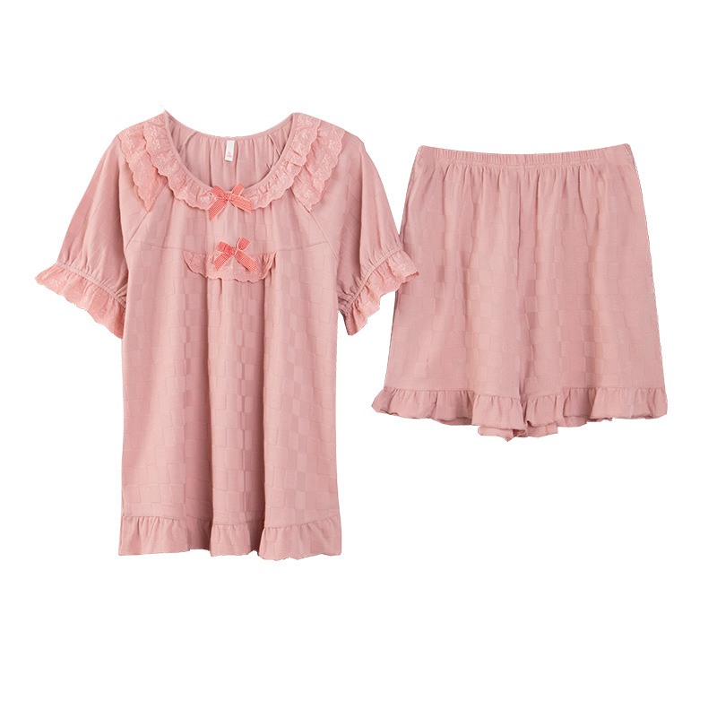 日系甜美ins风纯棉睡衣女夏季少女花边短袖短裤可外穿家居服套装