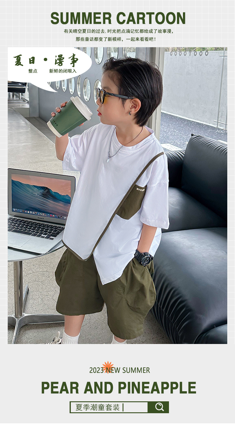 潮牌儿童装男童夏季短袖套装2025新款中大男孩夏季薄款两件套休闲
