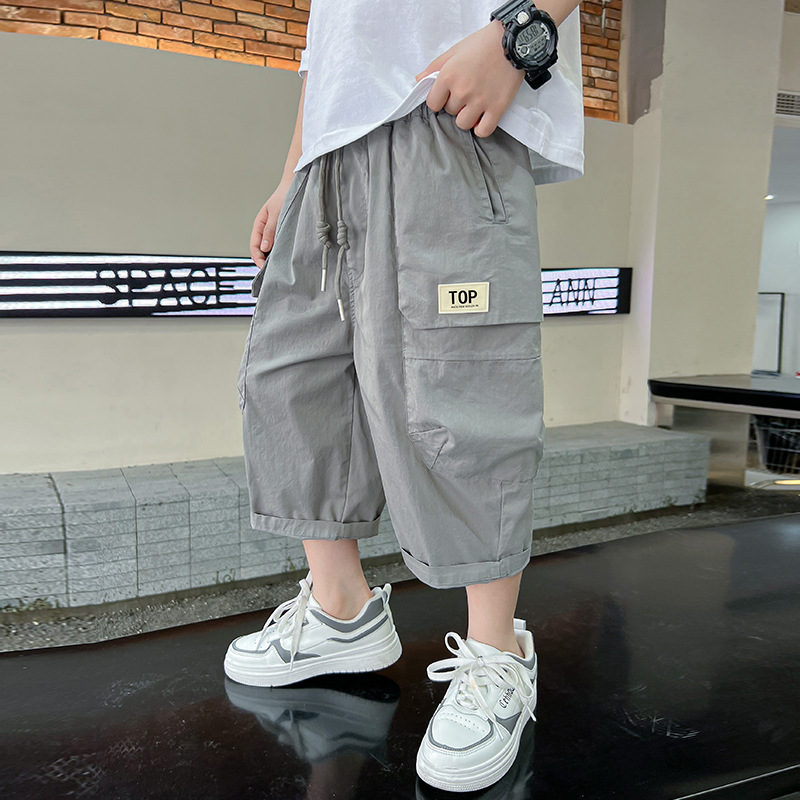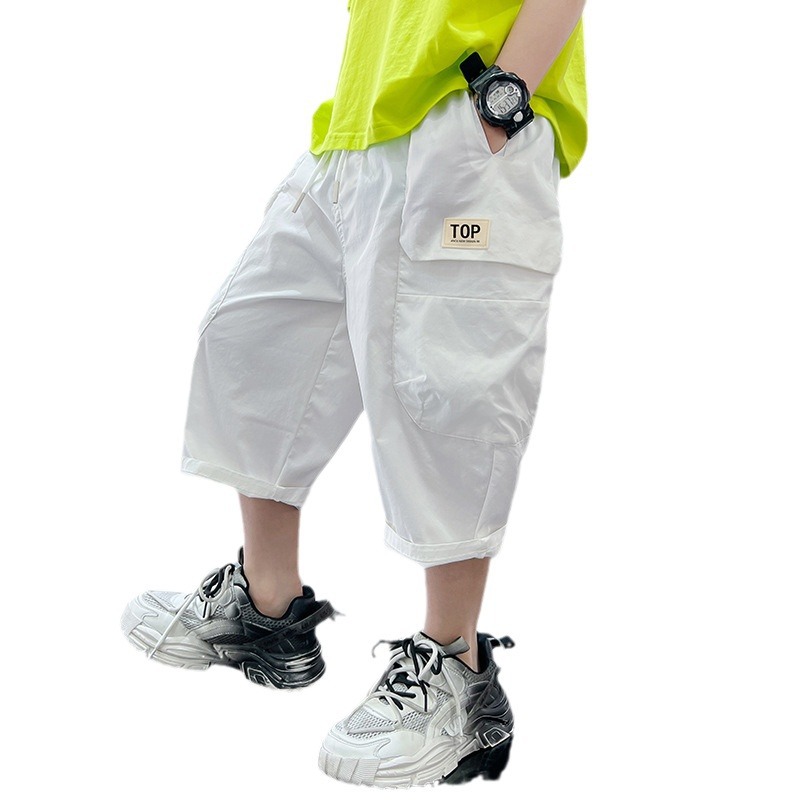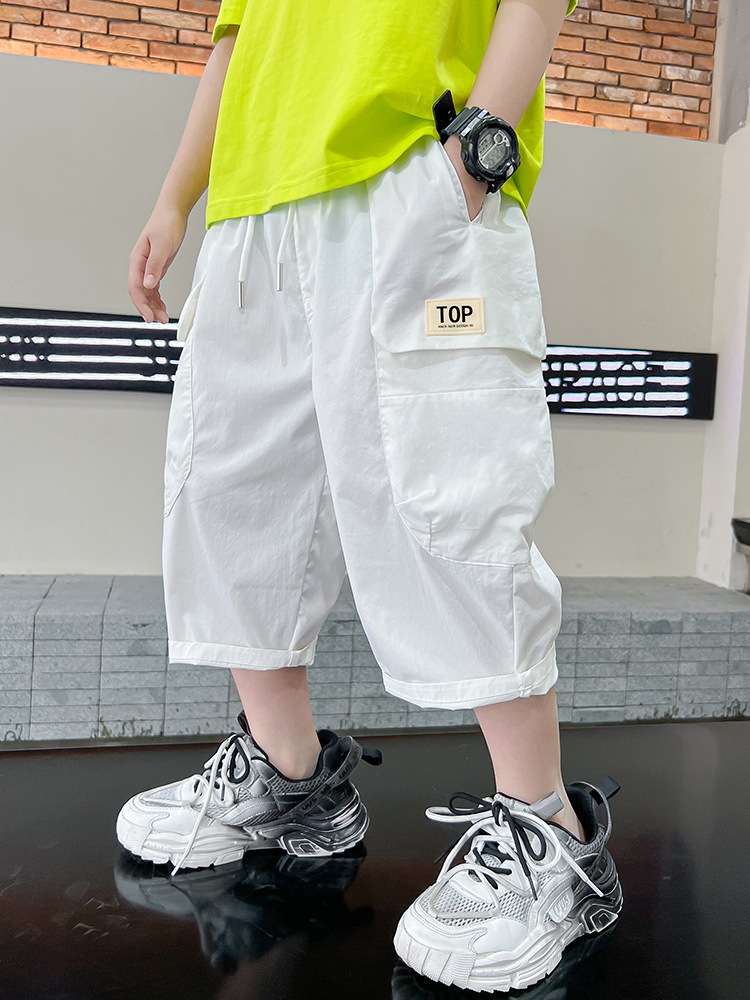男童裤子夏季薄款2025新款儿童夏款七分裤宽松白色休闲裤