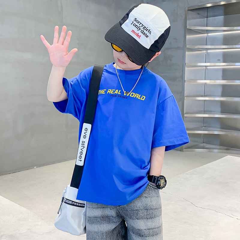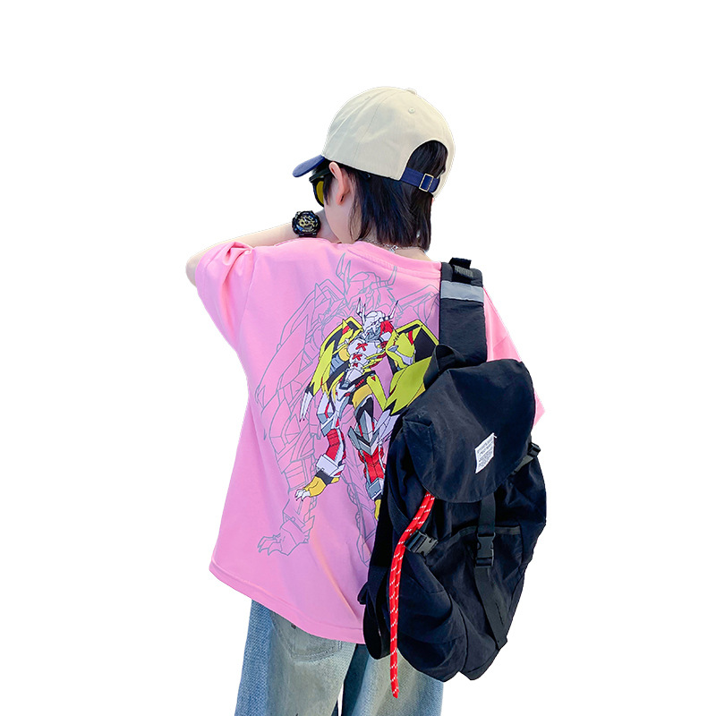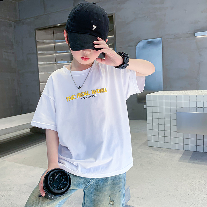 男童短袖t恤夏季薄2025新款儿童夏装粉色半袖体恤全棉中大童夏款T