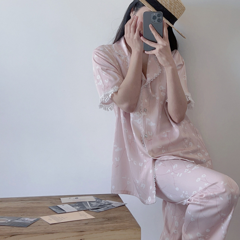 睡衣女夏季冰丝长袖甜美日系高级感家居服丝绸新款春秋季可外穿女