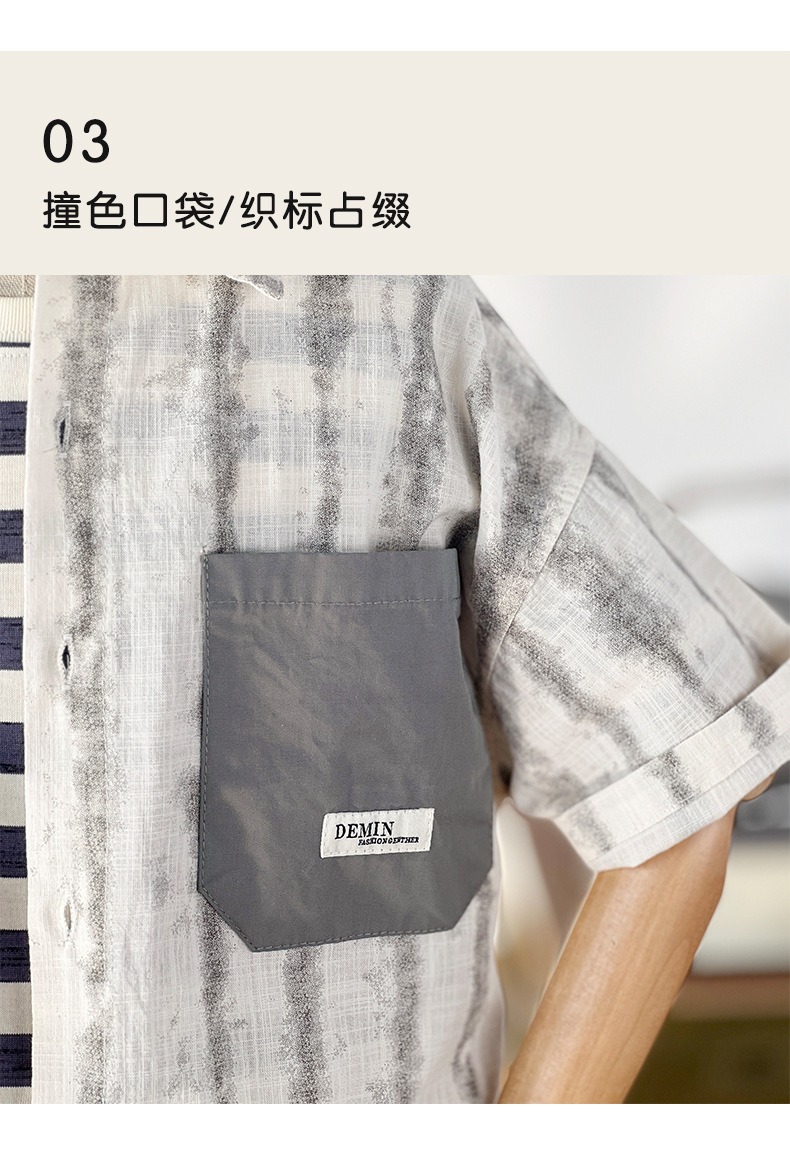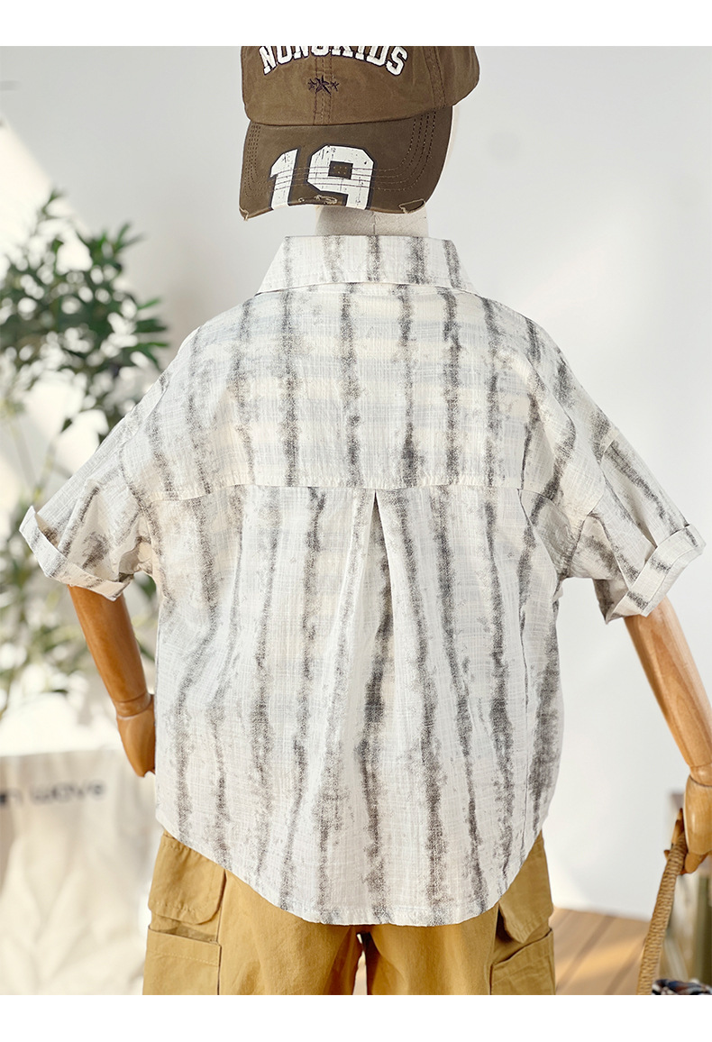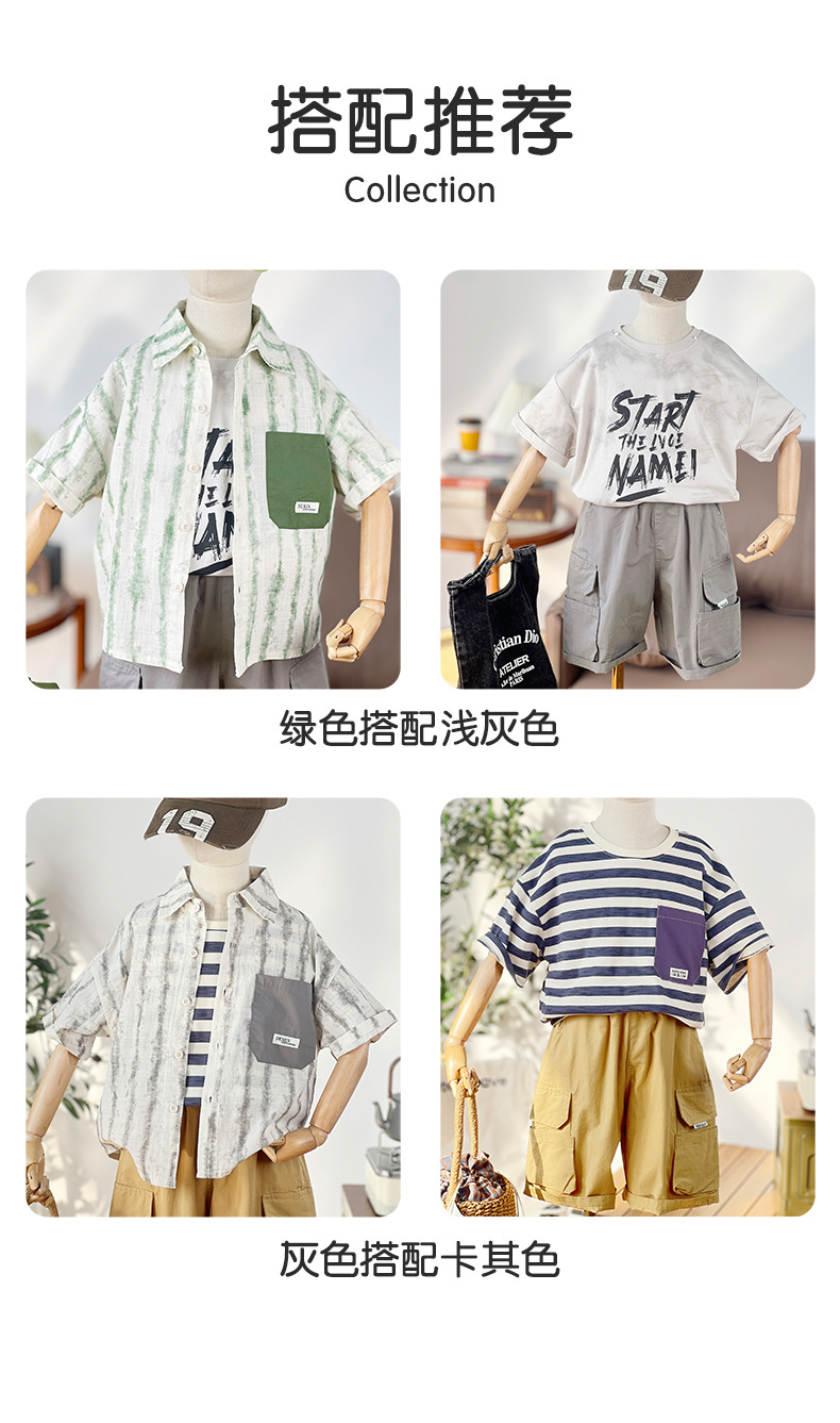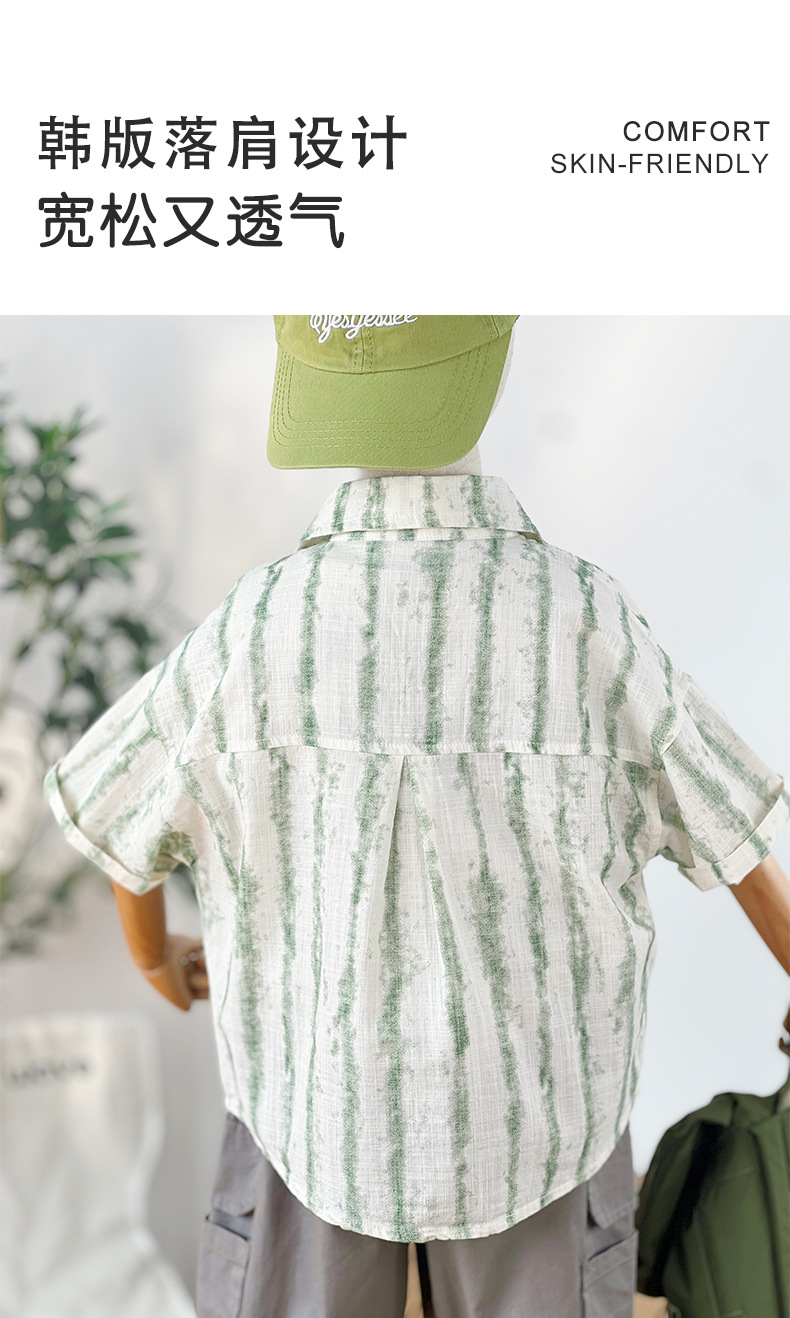儿童衬衫夏季薄款男童短袖上衣中小童条纹翻领衣服夏装大童衬衣夏