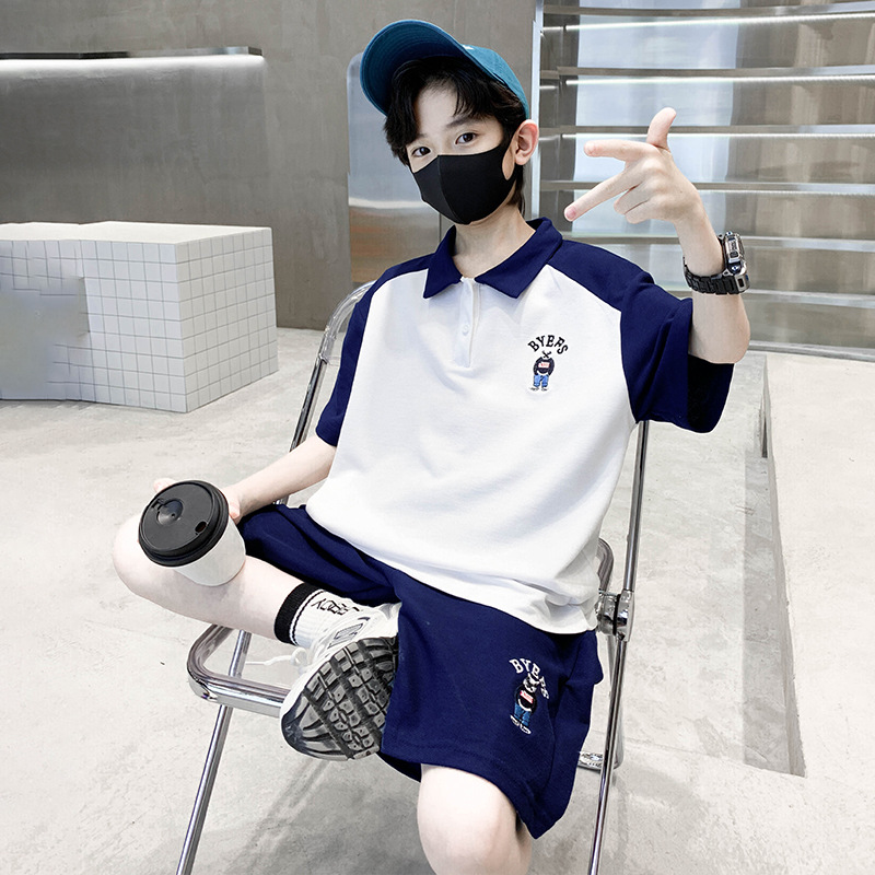 男童夏装套装2025新款中大童男孩夏季短袖POLO衫运动帅气两件套潮