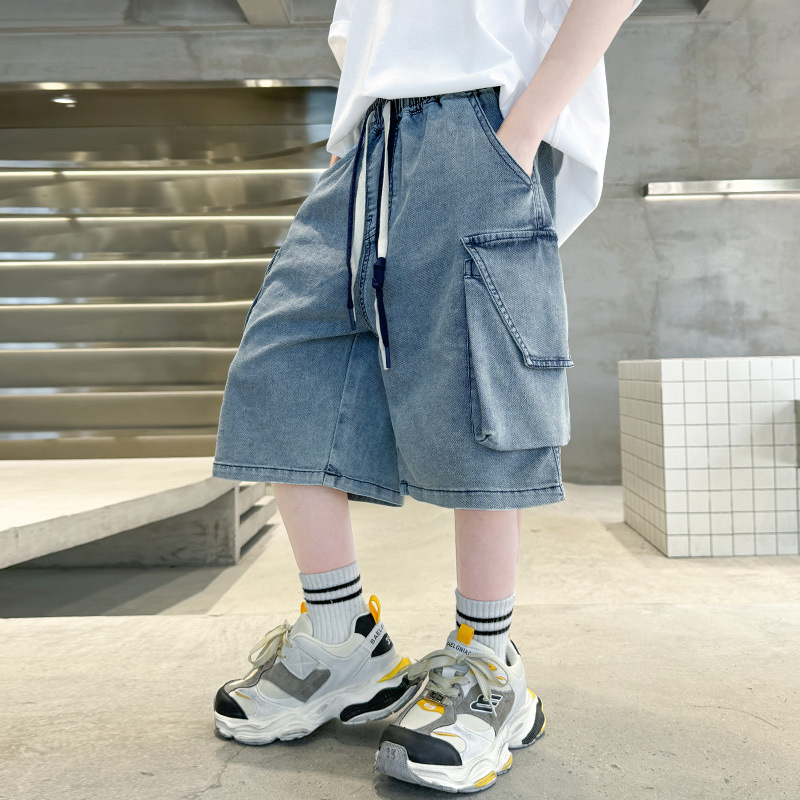 时尚牛仔背带裤女夏季新款设计感拼接撞色宽松连体裤短裤潮