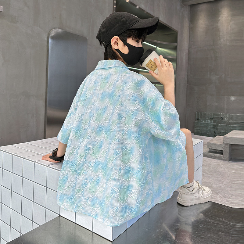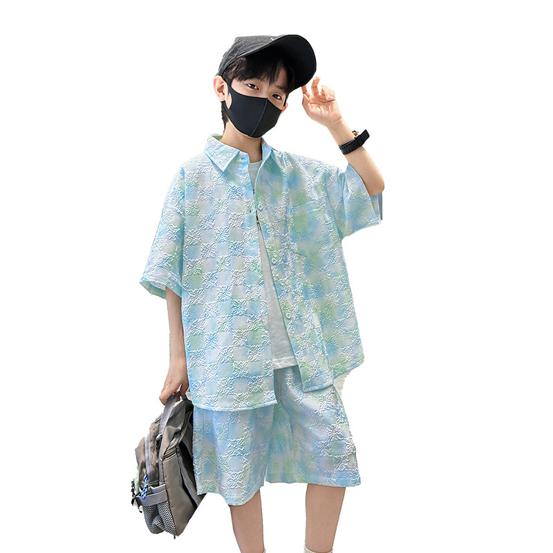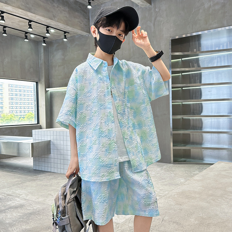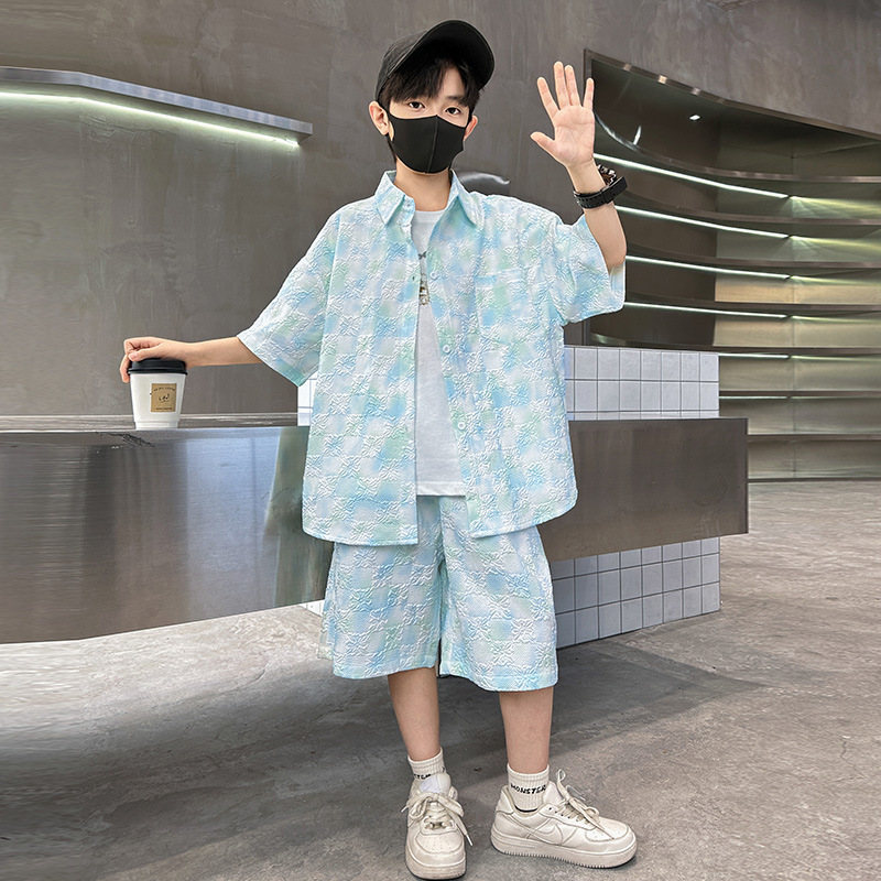 男童夏装扎染衬衫套装2025新款薄款清凉洋气男孩短袖短裤两件套潮