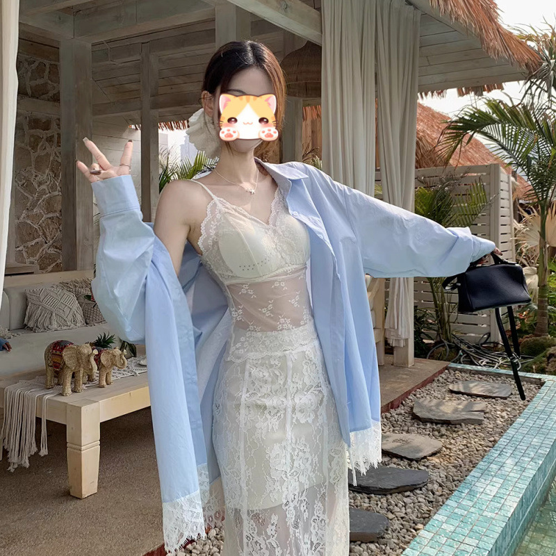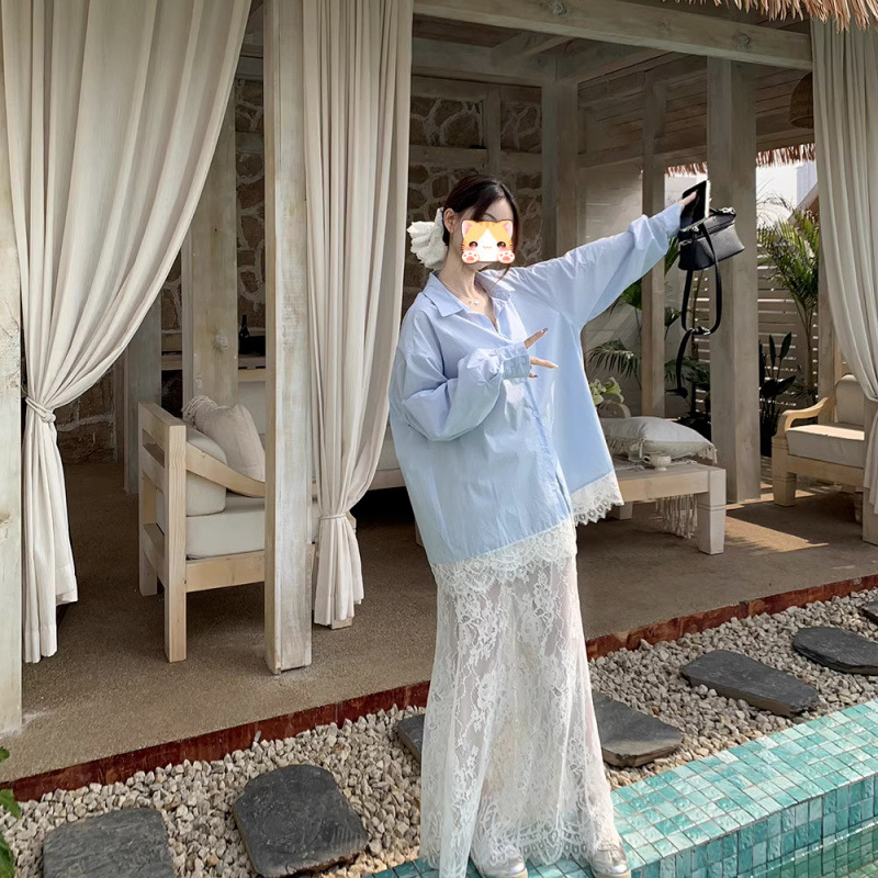 蓝色单衬衫 蕾丝拼接 气质百搭