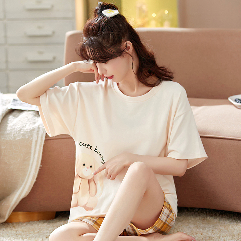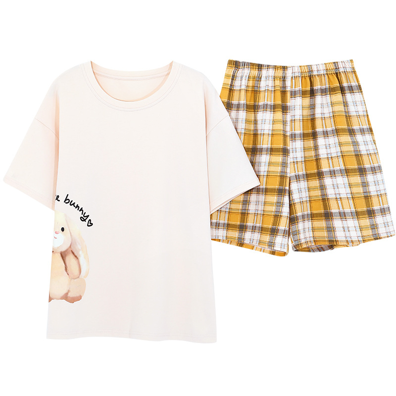 新款夏季纯棉睡衣女日系休闲圆领套头全棉短袖短裤家居服套装