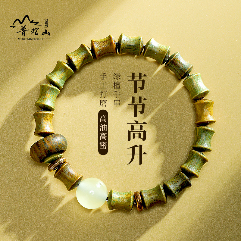 天然绿檀木手串男盘玩佛珠竹节高升手链