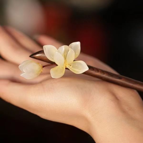 玉兰花 发簪一支(普通木)