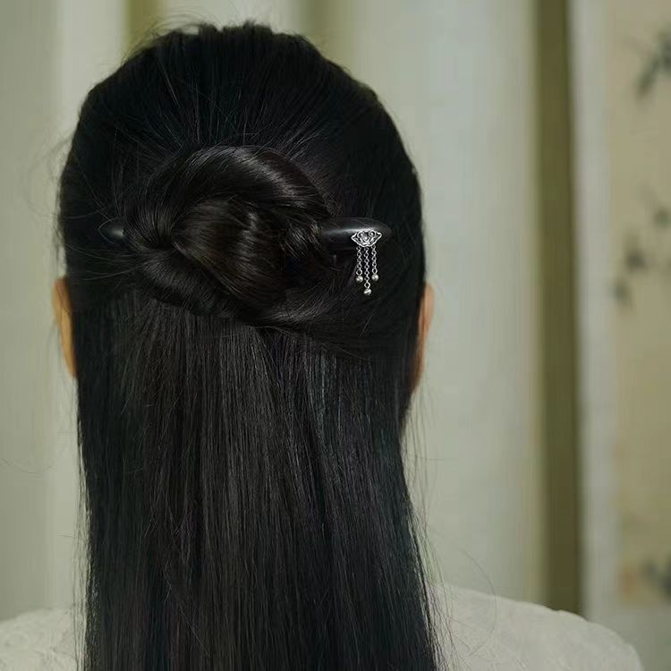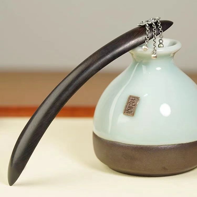 浣溪沙|黑檀木反扣簪双尖簪原创宽月手作盘发短簪子古风发簪小众