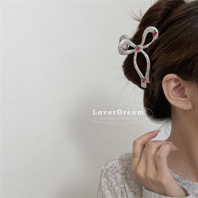 ins新年圣诞红色爱心蝴蝶结樱桃发夹可爱波点抓夹发饰女