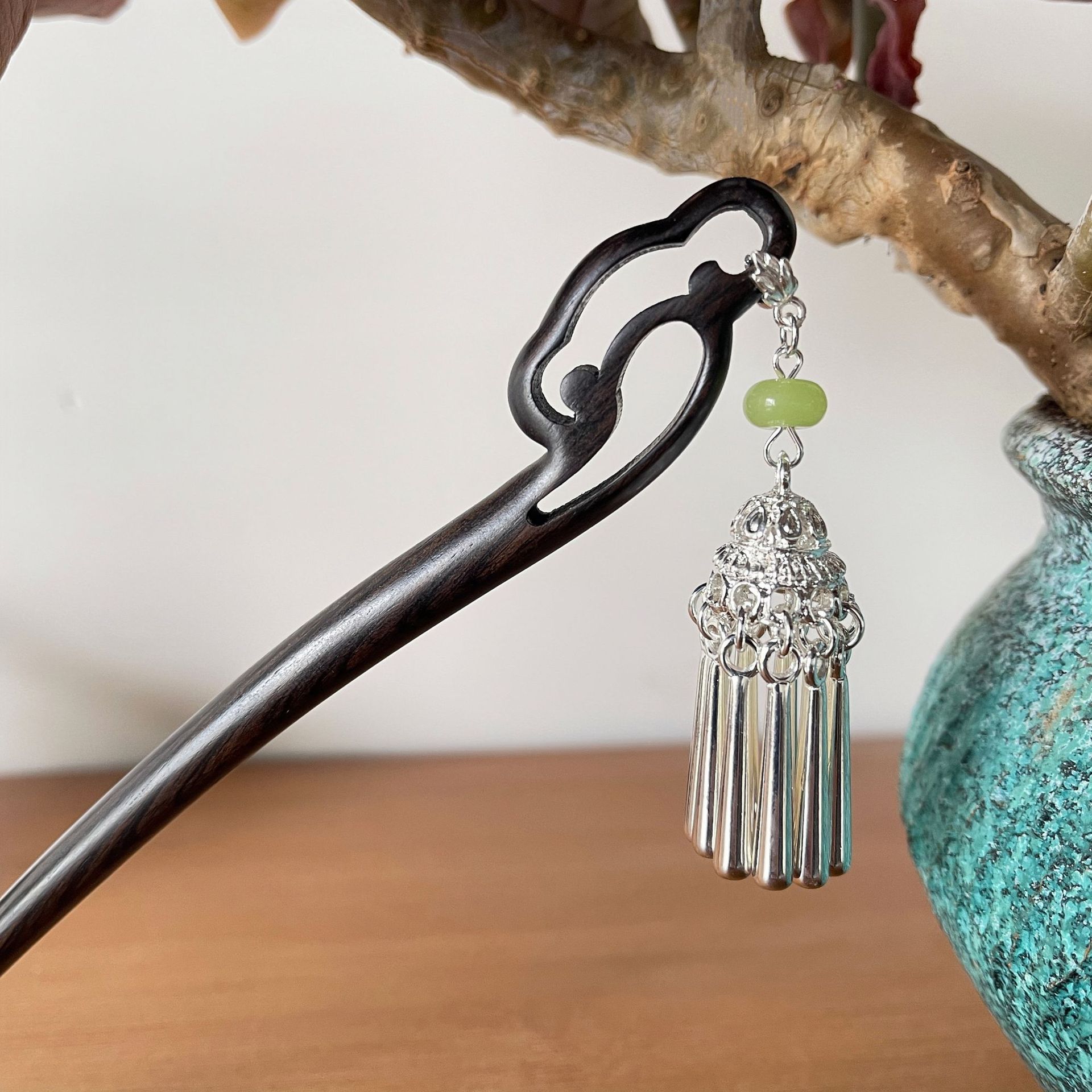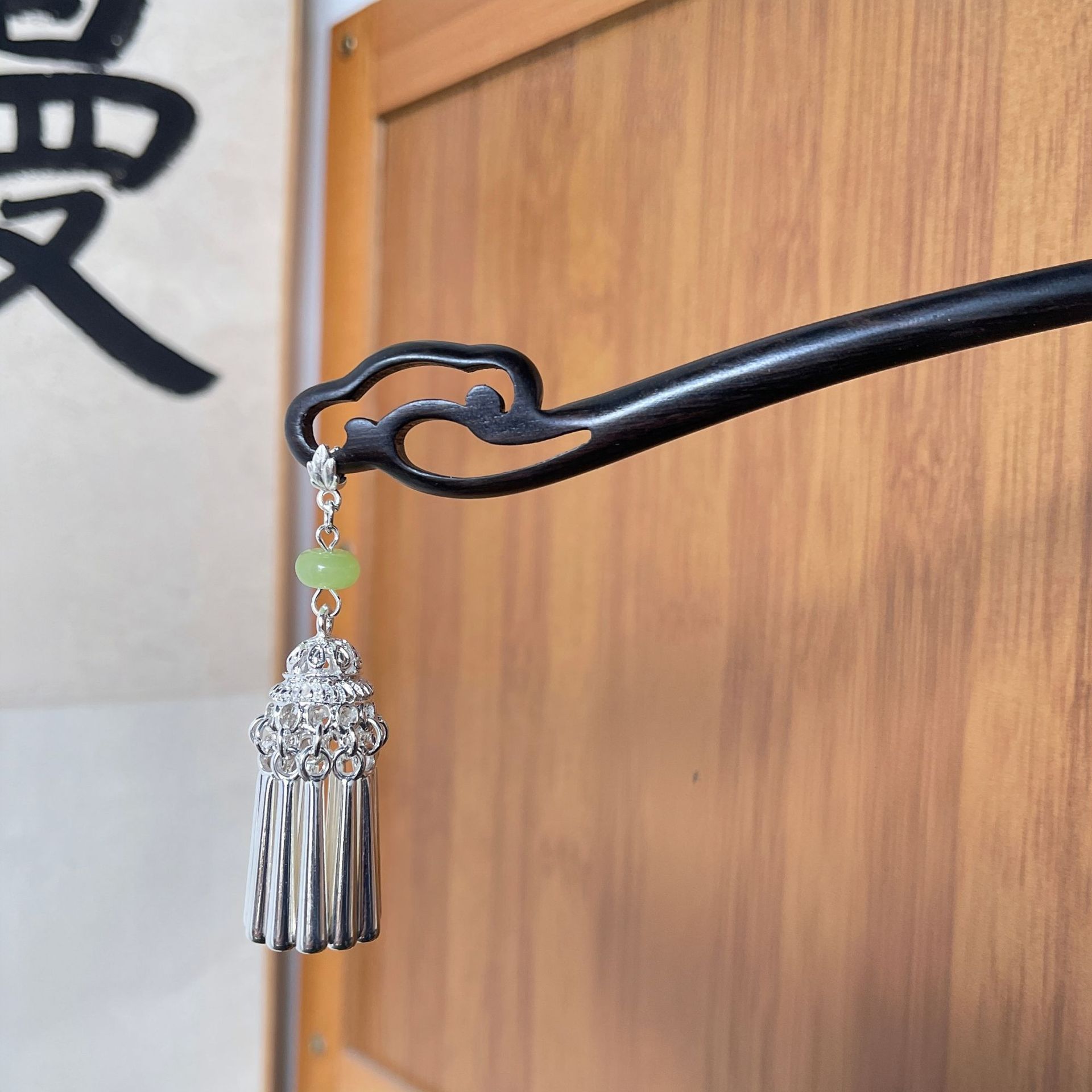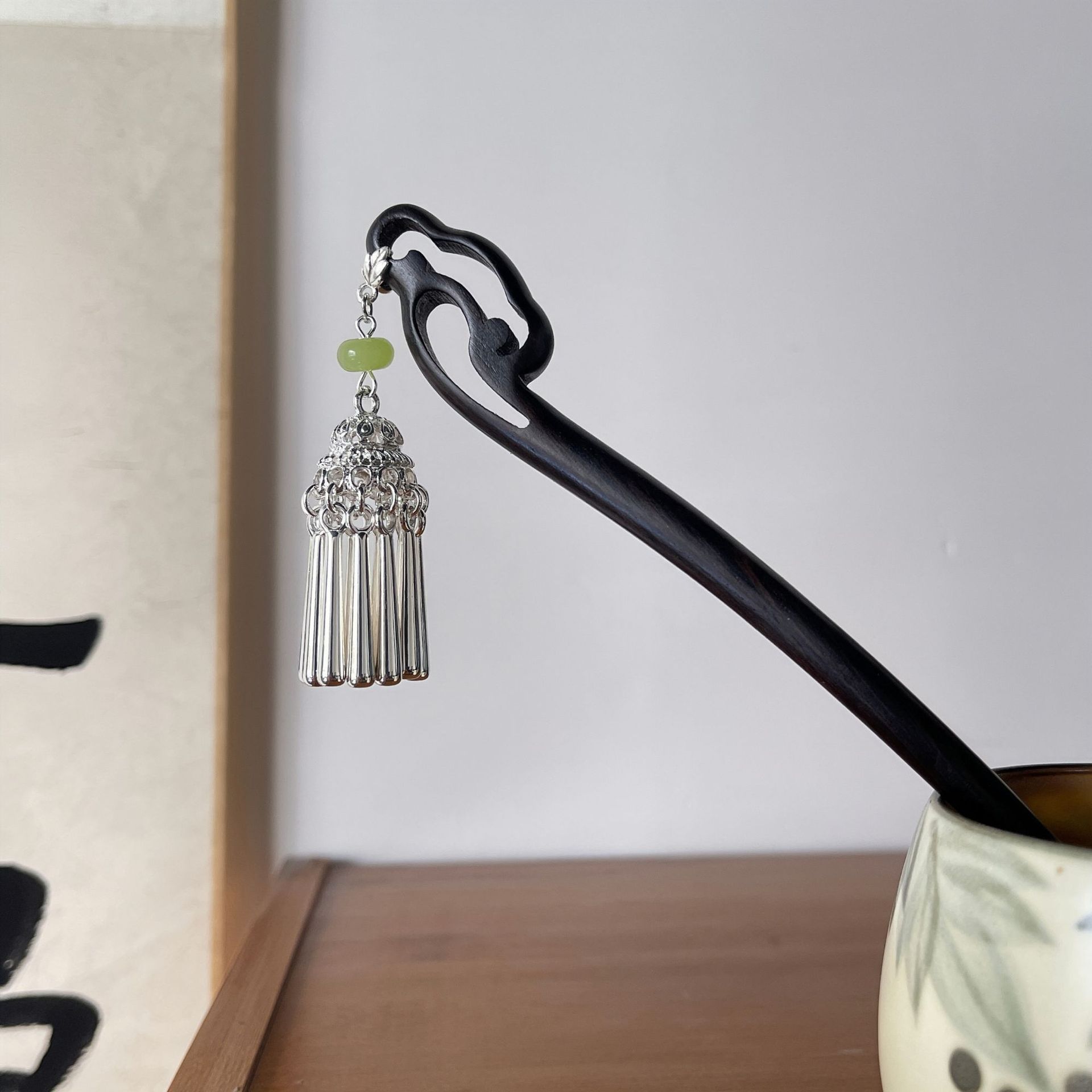 黑檀木国风发簪小众设计发簪女中式盘发簪步摇流苏簪子古风头饰女
