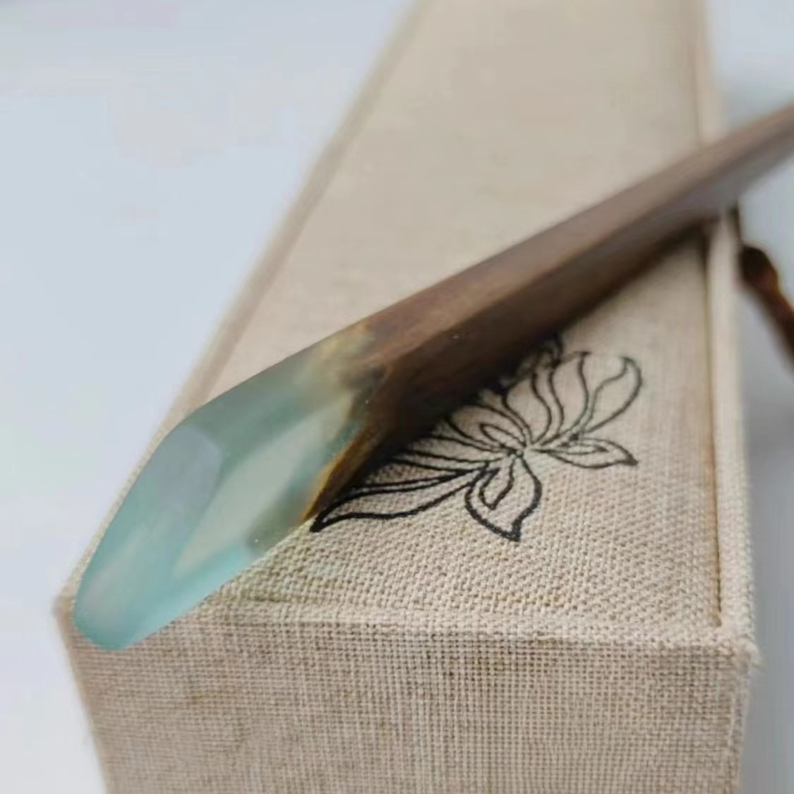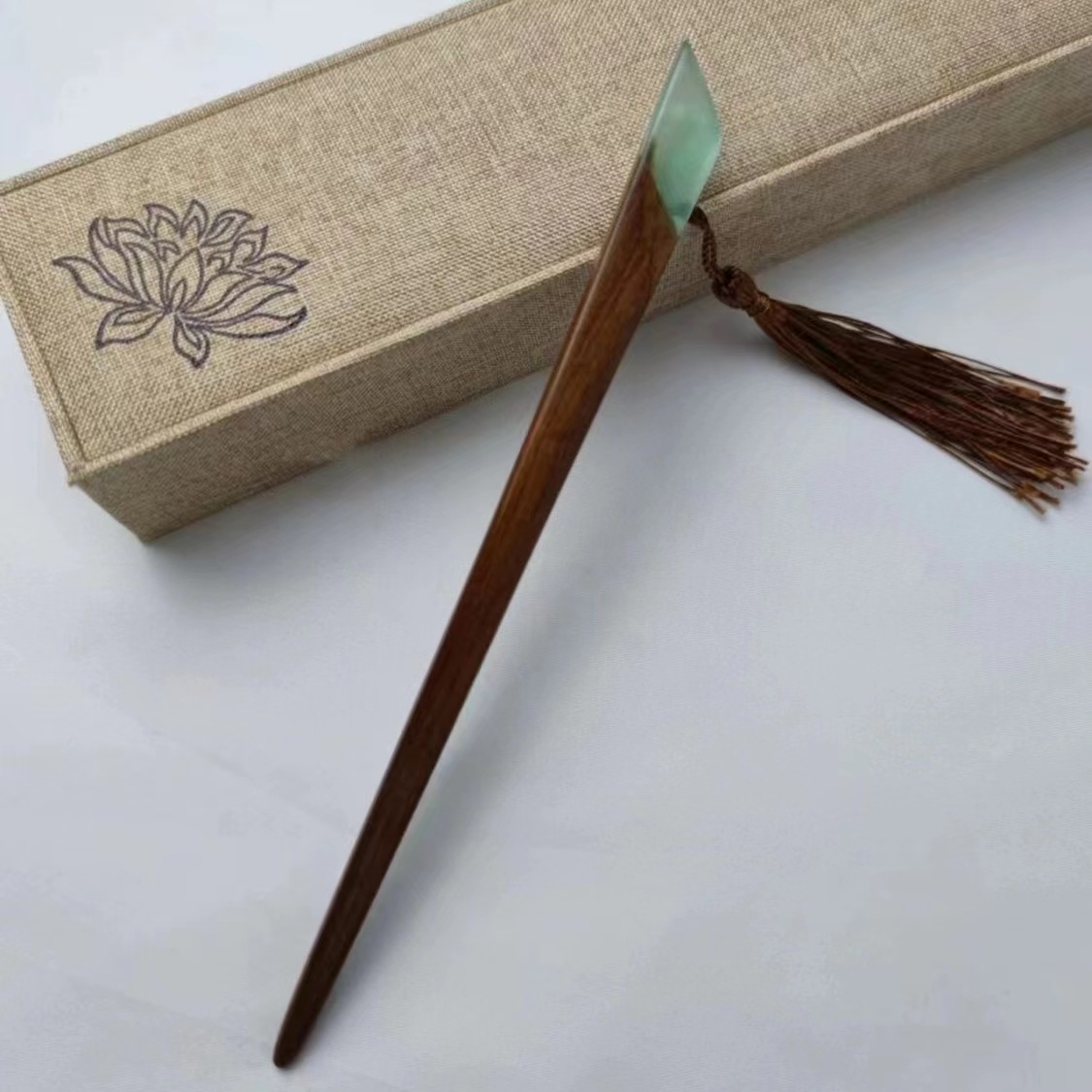 浅蓝美学 绿檀木闪透绿脂发簪树脂作品发饰透绿脂工艺木簪纯手工